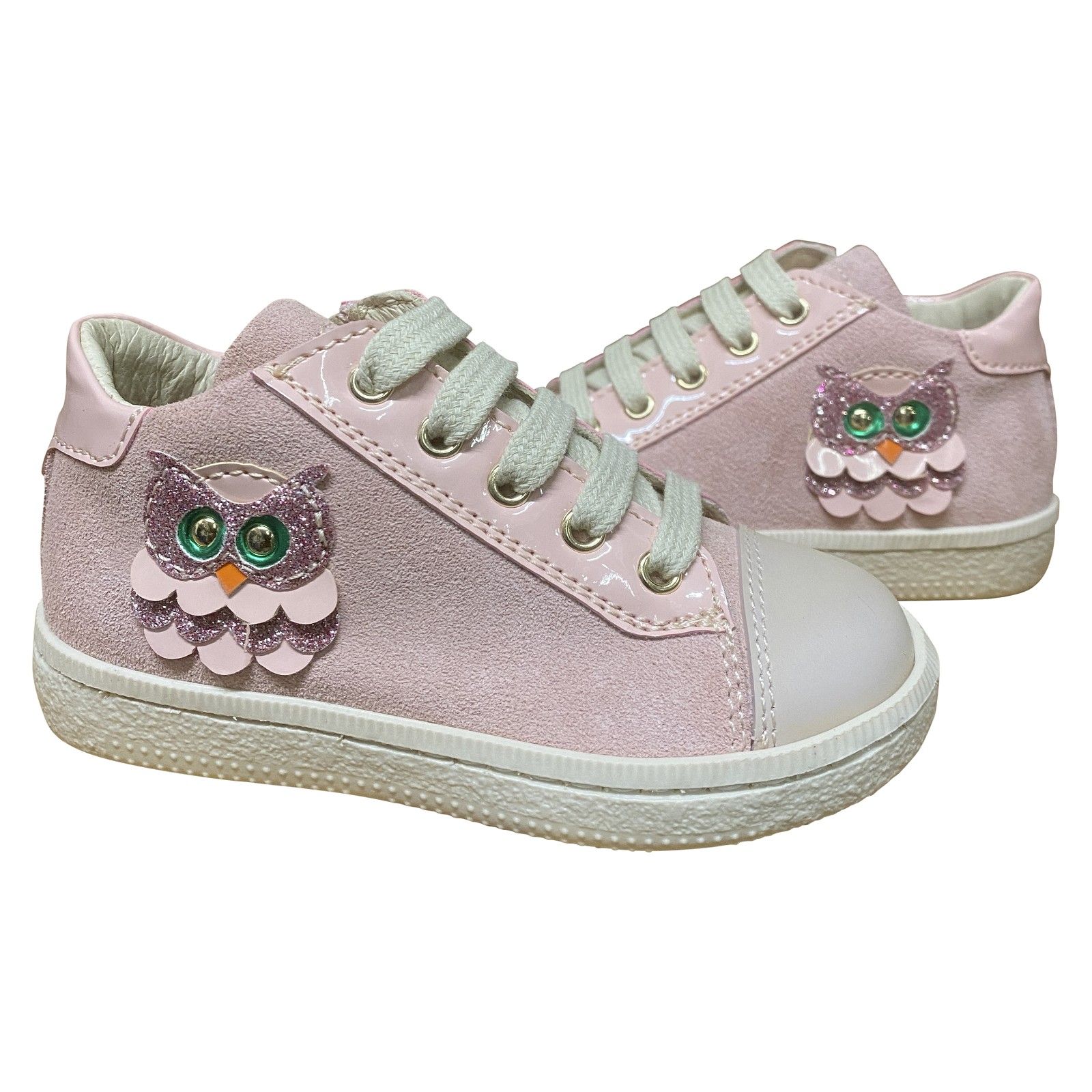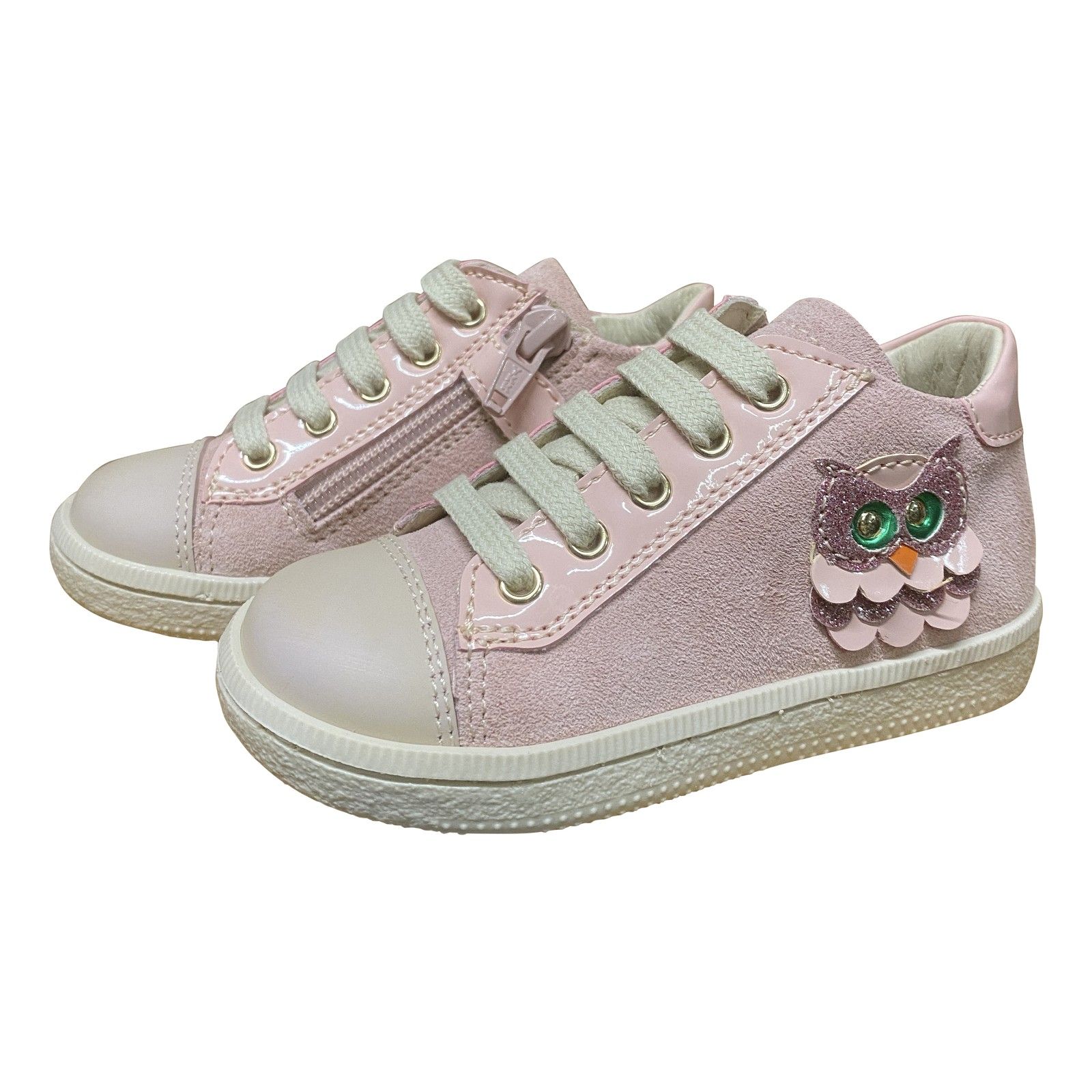Speelse eerste stapschoen in nude kleur, afgewerkt met een schattig uiltje aan de zijkant. Het zachte leder en de rubberen beschermneus zorgen voor comfort en extra bescherming bij de eerste stapjes. Dankzij de vetersluiting zit het schoentje mooi rond de voet en is het makkelijk combineerbaar met elke outfit.