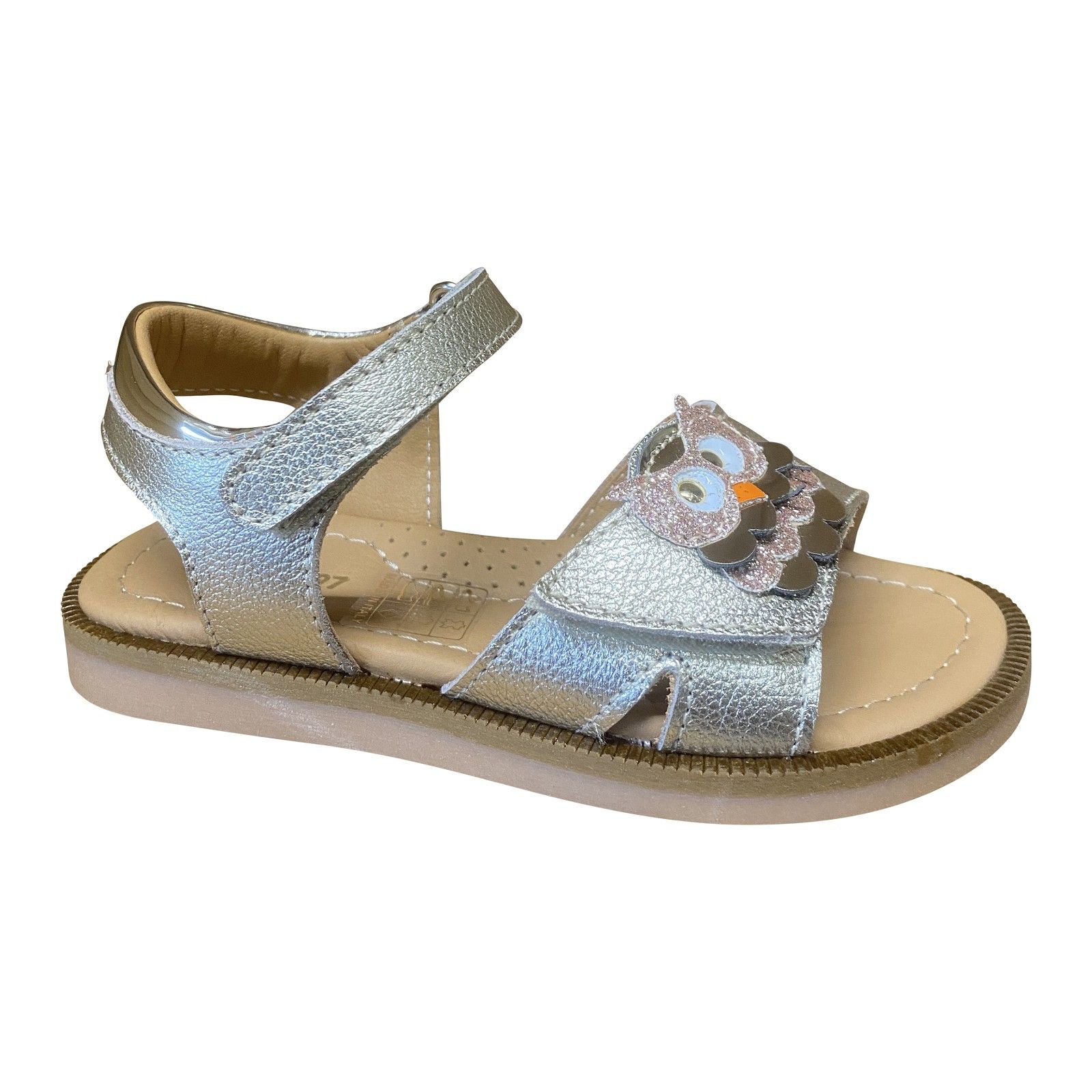 Platina meisjes sandaal met uiltje | kinderschoenen maluma Platina meisjes sandaal met uiltje | kinderschoenen maluma