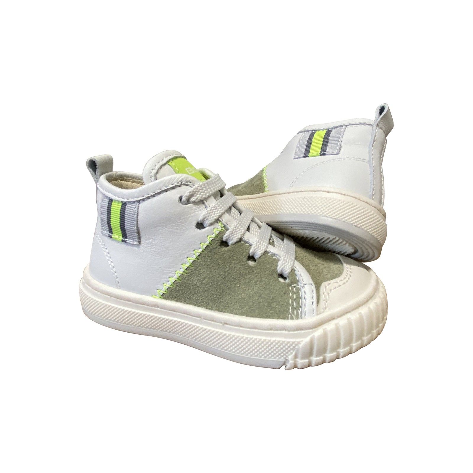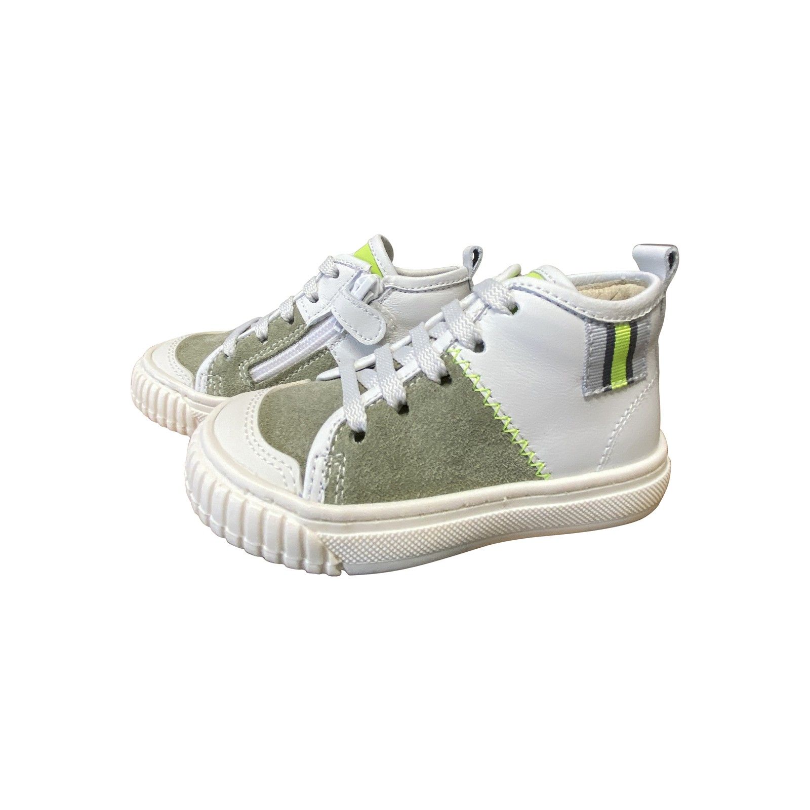 Stoer en flexibel jongenssneakertje met leder en suède in zachte groen- en grijstinten. De sportieve look, stevige neus en flexibele zool maken dit model ideaal voor actieve kindervoetjes.