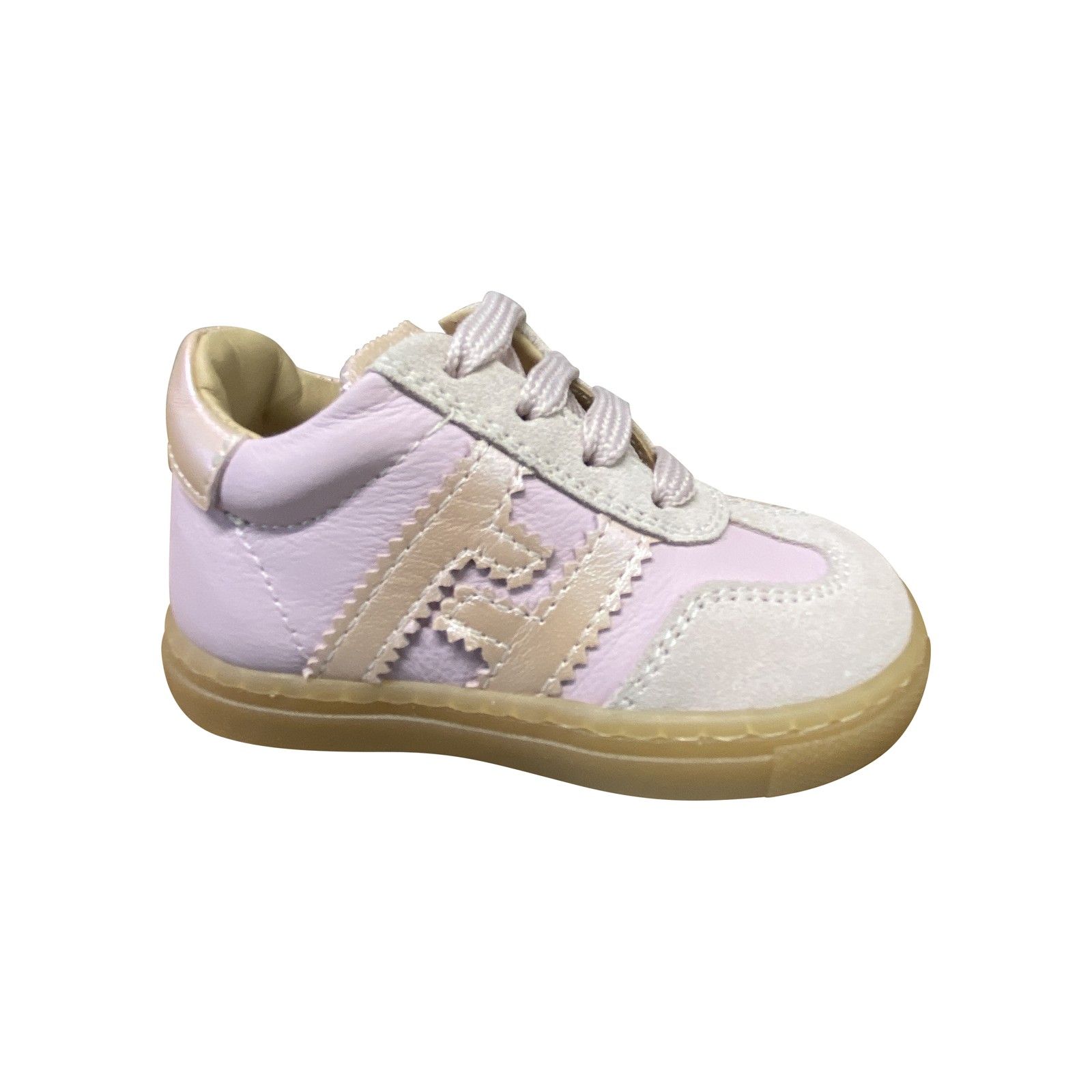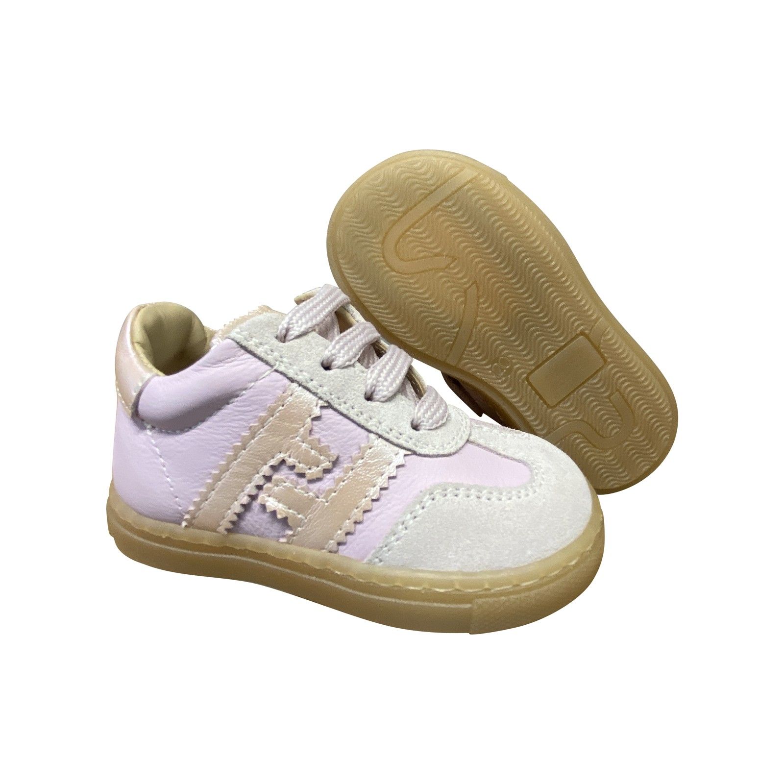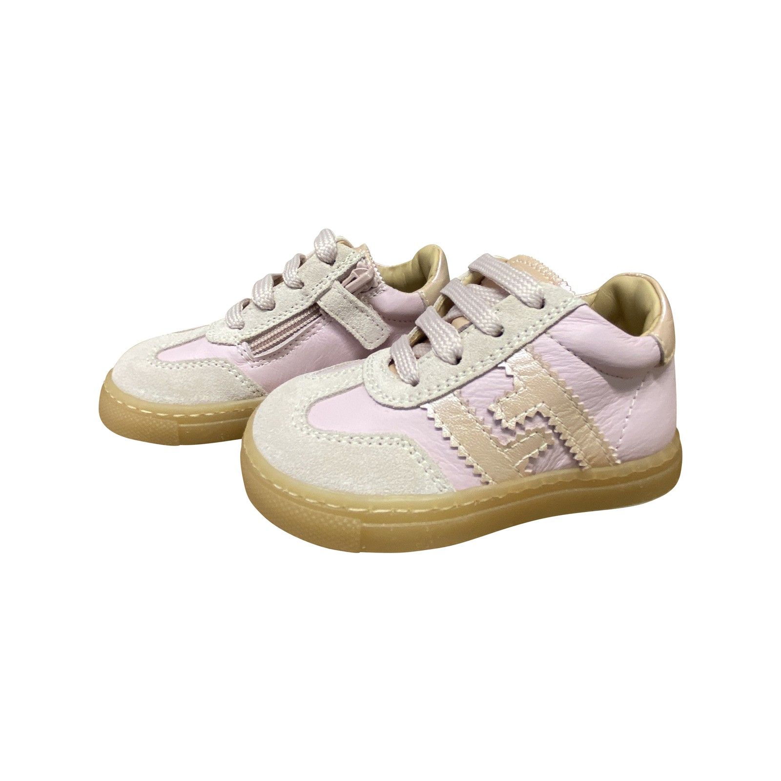 Deze Cherie eerste stapper voor meisjes heeft een stoere, maar toch frisse look. De combinatie van lichtroze leder, suède details en een zachte beige zool zorgt voor een moderne stijl. De flexibele zool en stevige ondersteuning maken dit model ideaal voor veilige en stabiele eerste stapjes.