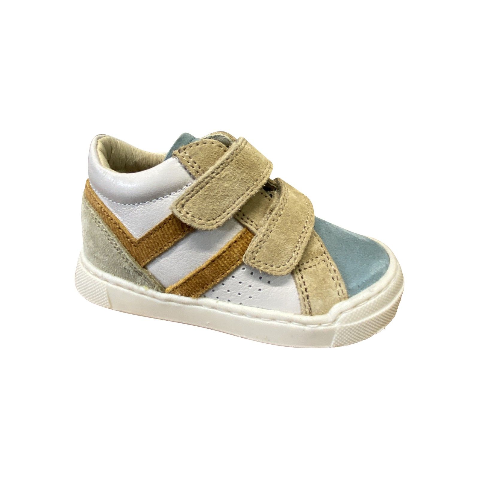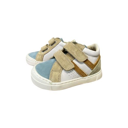 Stevig eerste stapschoentje met velcro’s, zachte materialen en een flexibel zooltje. Het rubberen topje beschermt de schoen extra tijdens het kruipen en stappen.