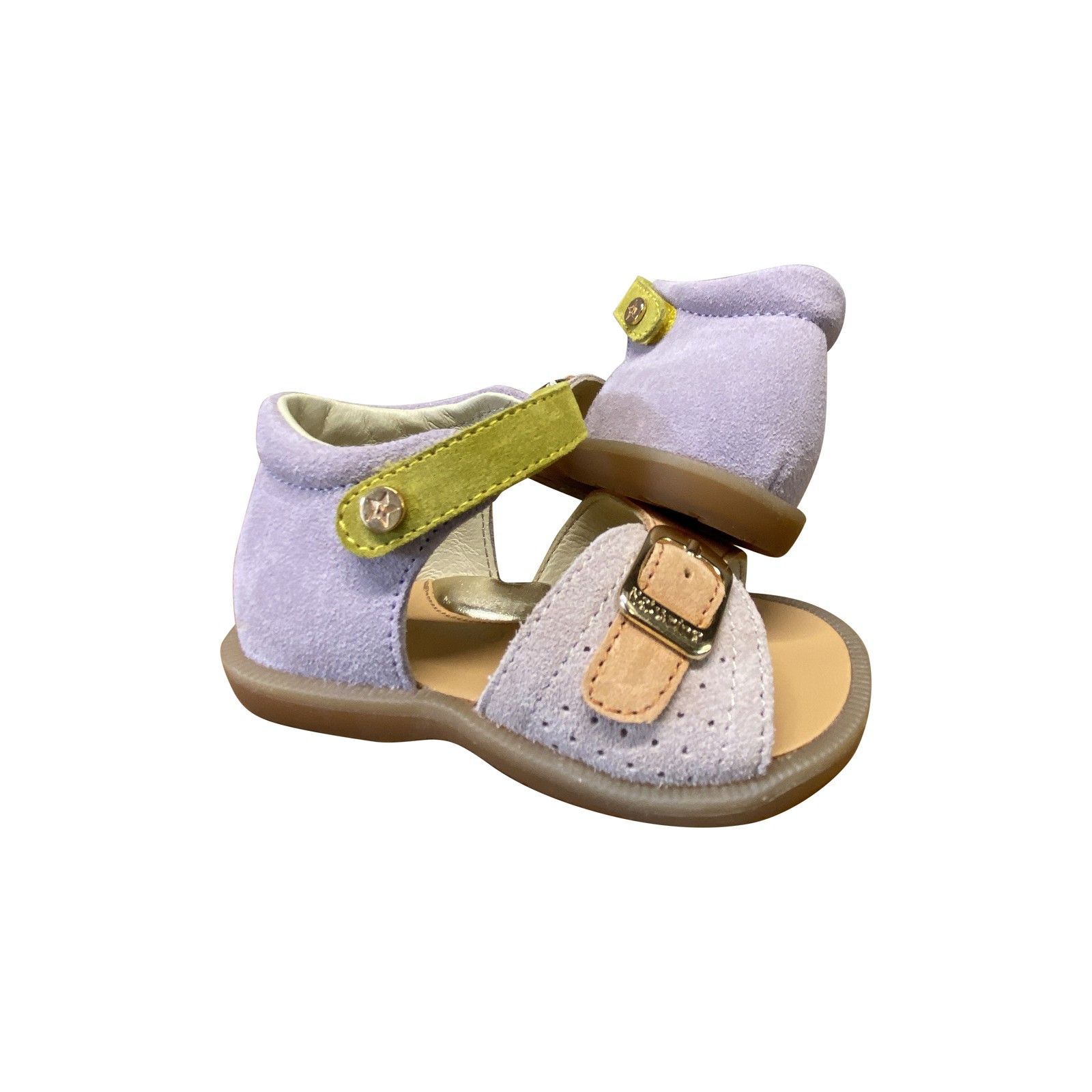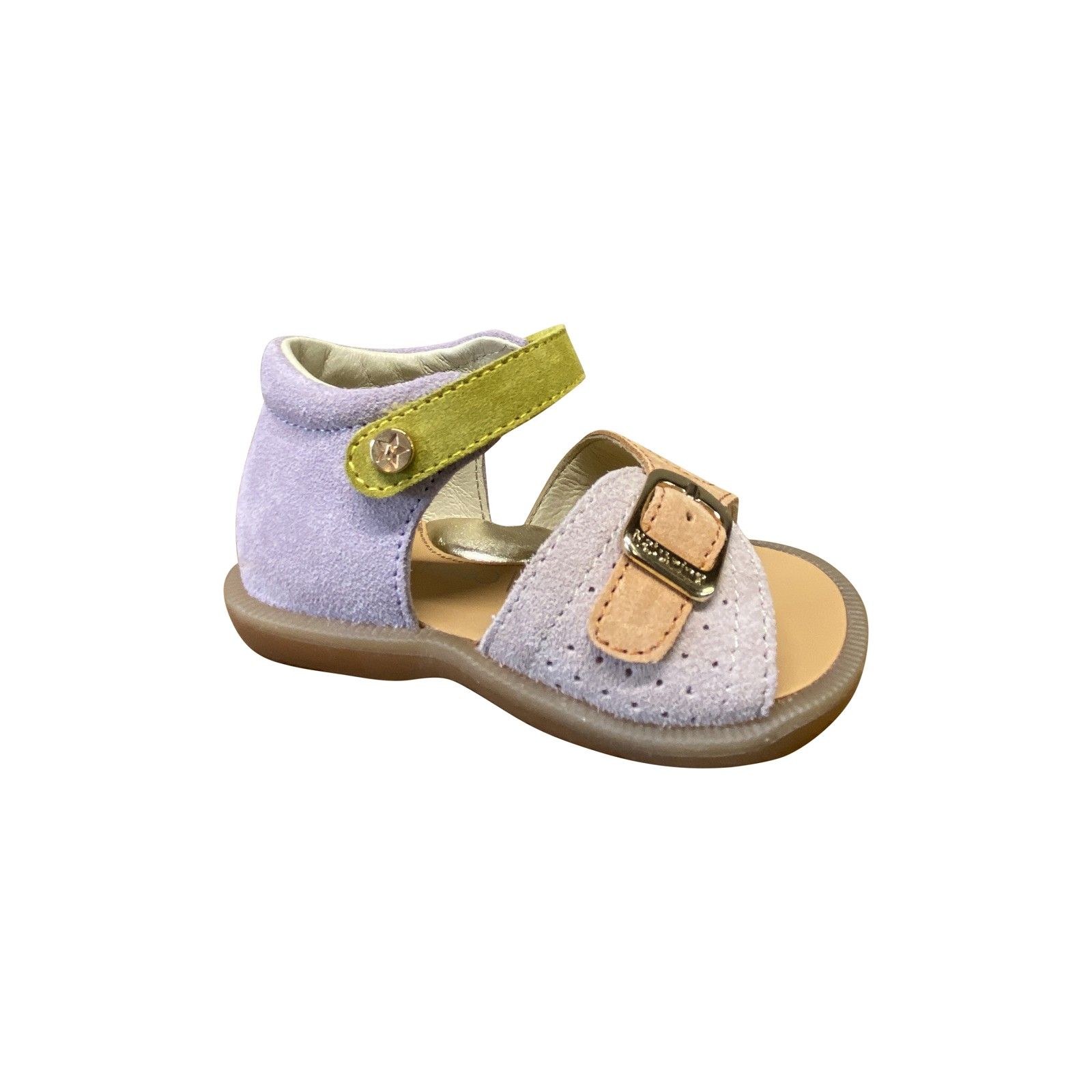 Stevig sandaaltje met flexibele zool en gesloten hiel voor extra steun. Gemaakt van zacht leder en verstelbaar voor een goede pasvorm.