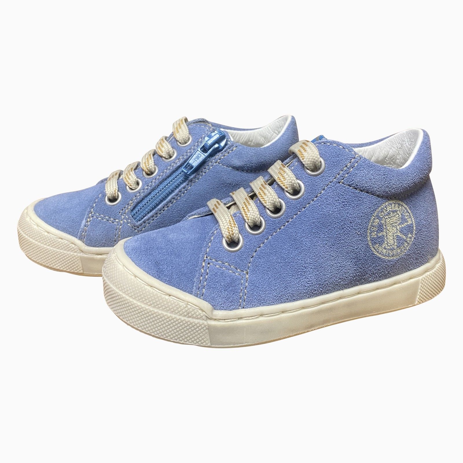 Stoere blauwe basketter voor jongens met veter- en ritssluiting voor een goede pasvorm en makkelijk aan- en uittrekken. Uitgevoerd in stevig leder met rubberen neus die de schoen beschermt en een flexibele rubberen zool voor stabiel stappen