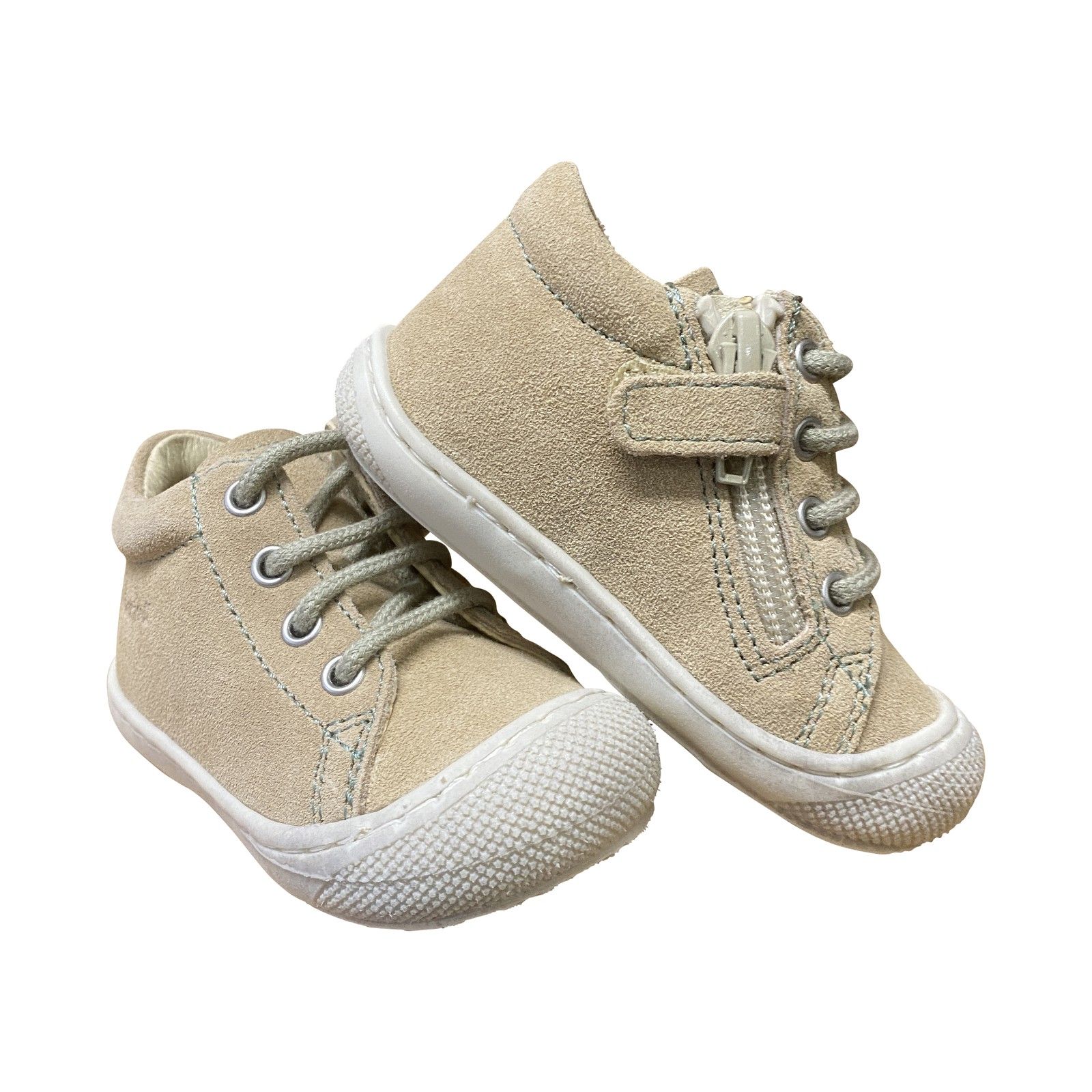De flexibele rubberen kruipneus beschermt de schoen extra tijdens het spelen en ontdekken. Dankzij de vetersluiting sluit het schoentje mooi aan rond de voet en biedt het voldoende stabiliteit zonder de bewegingsvrijheid te beperken.