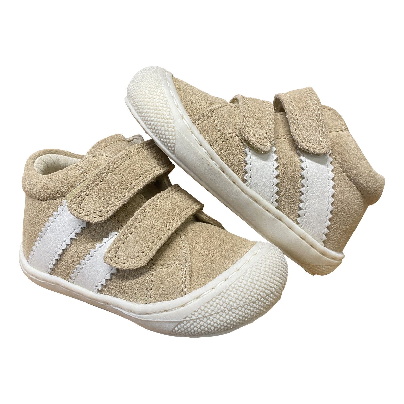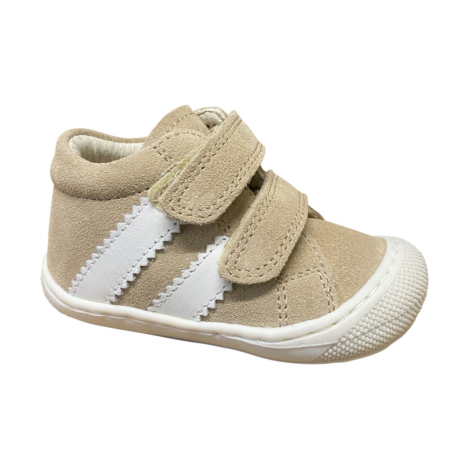 Deze Naturino Cocoon eerste stapschoen voor jongens is uitgevoerd in taupe nubuck en voorzien van twee velcro sluitingen voor snel en gemakkelijk aan- en uittrekken.