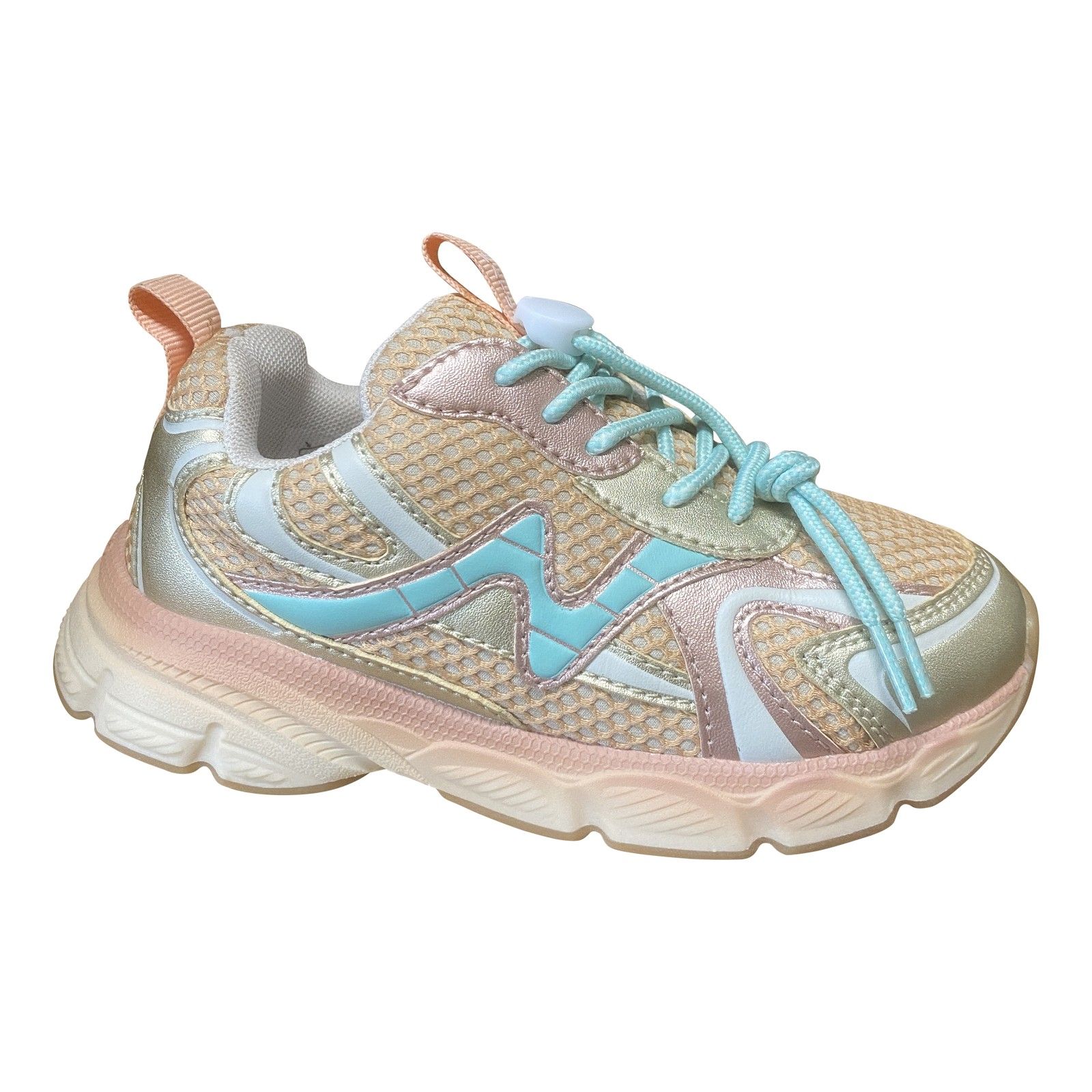 Stoere meisjesschoen in rosé metallic tinten met snel-sluiting voor makkelijk aan- en uittrekken. Het ademende bovenwerk en de stevige, flexibele rubberen zool zorgen voor comfort en grip tijdens actief spelen.