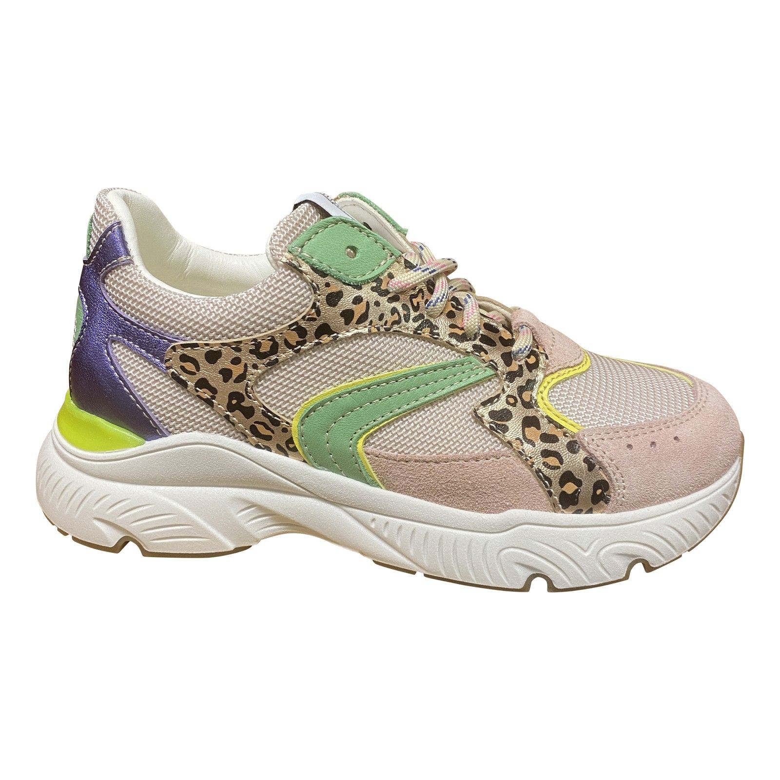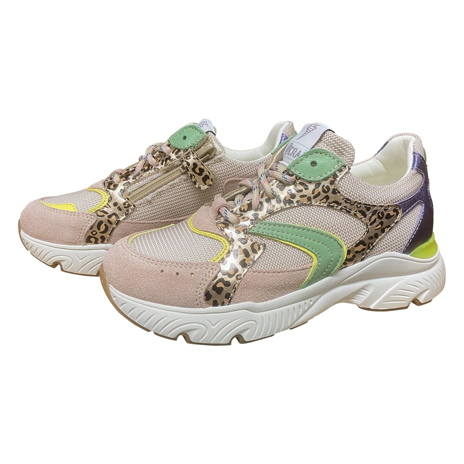 Sportieve runner voor meisjes met veter- en ritssluiting voor een makkelijke instap. Het model combineert mesh met suede accenten en valt op door het speelse kleurenpalet en stoere details. De sportieve zool zorgt voor een stabiele pasvorm en is ideaal voor actieve dagen.