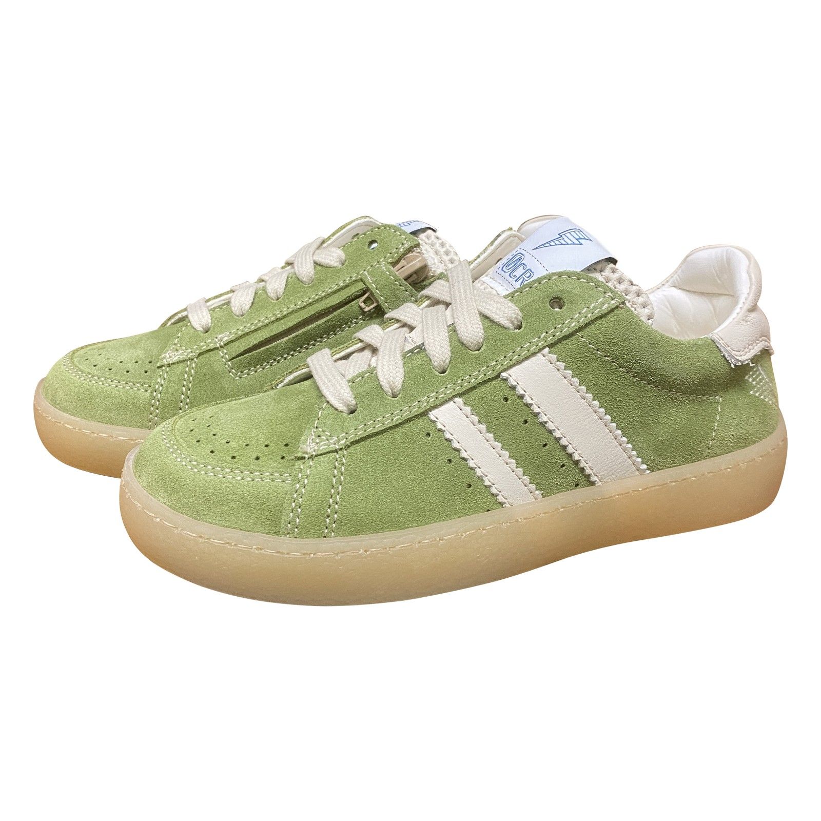 Sportieve lage sneaker in een stoere kaki kleur, uitgevoerd in zacht suède en nubuck. De combinatie van veter en ritssluiting zorgt voor een makkelijke instap en een goede pasvorm. Ideaal voor actieve dagen, met een comfortabele feel en een sportieve look die makkelijk te combineren is.