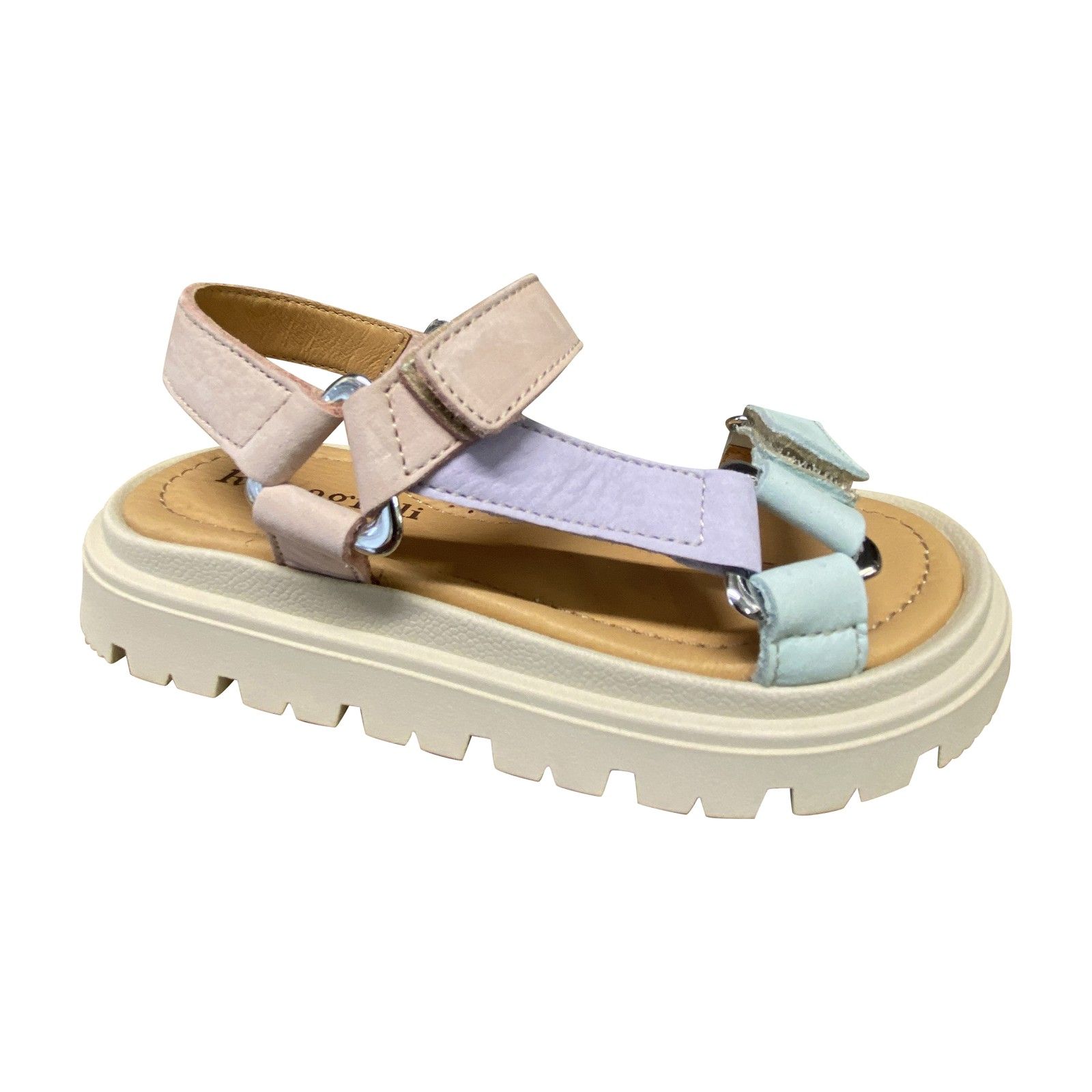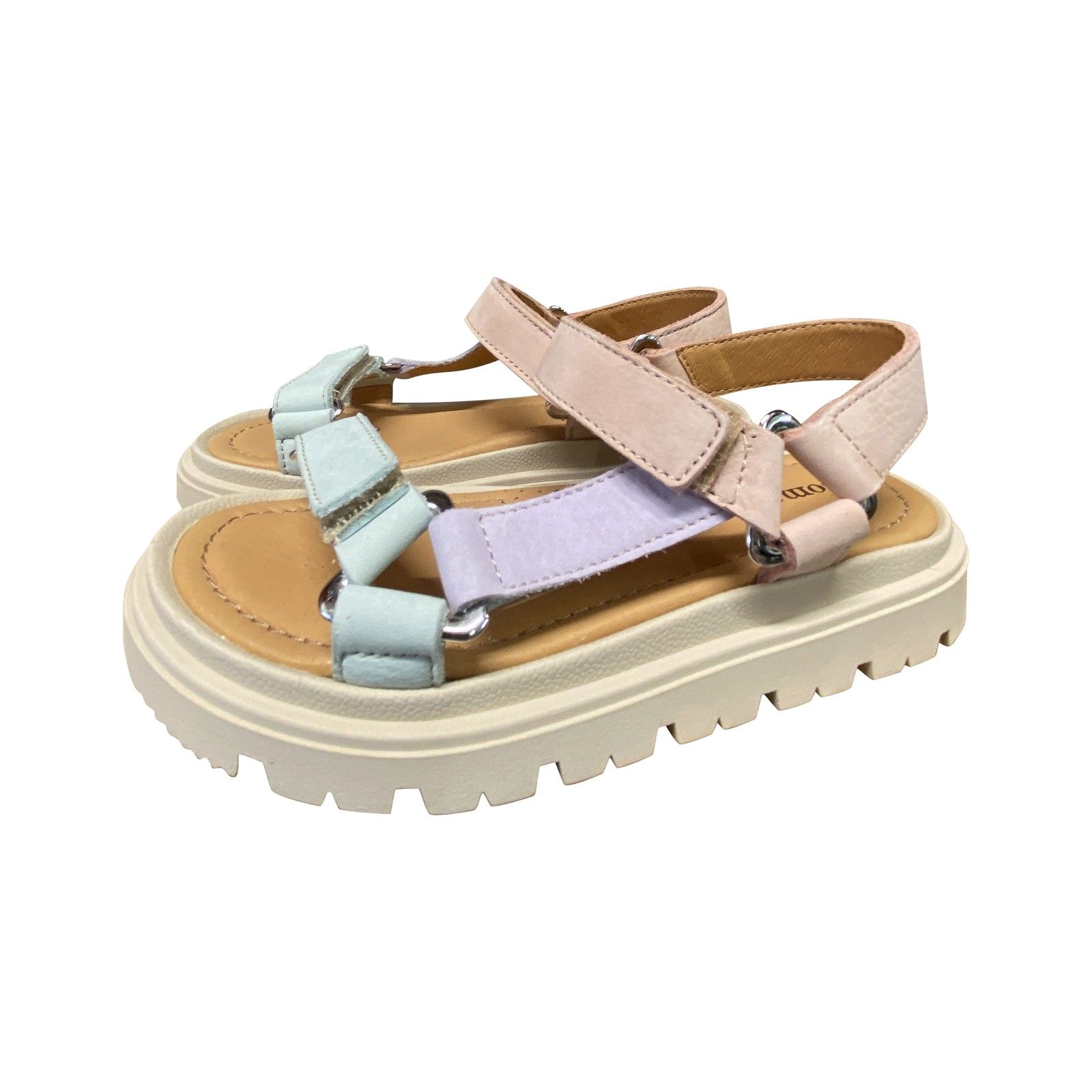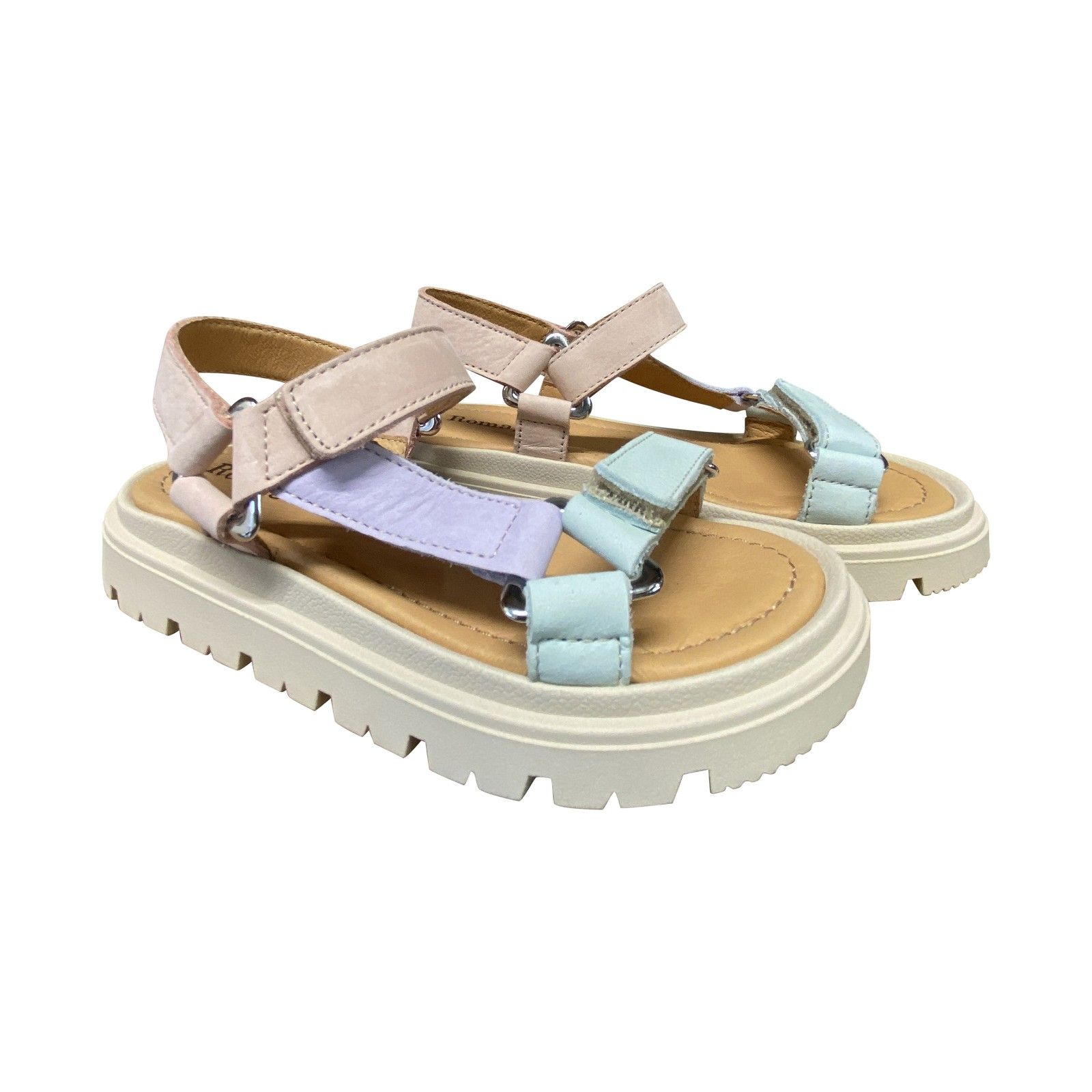 Trendy open sandaal in zachte pasteltinten met stevige zool en verstelbare velcro. Comfortabel en stijlvol voor elke zomerdag.