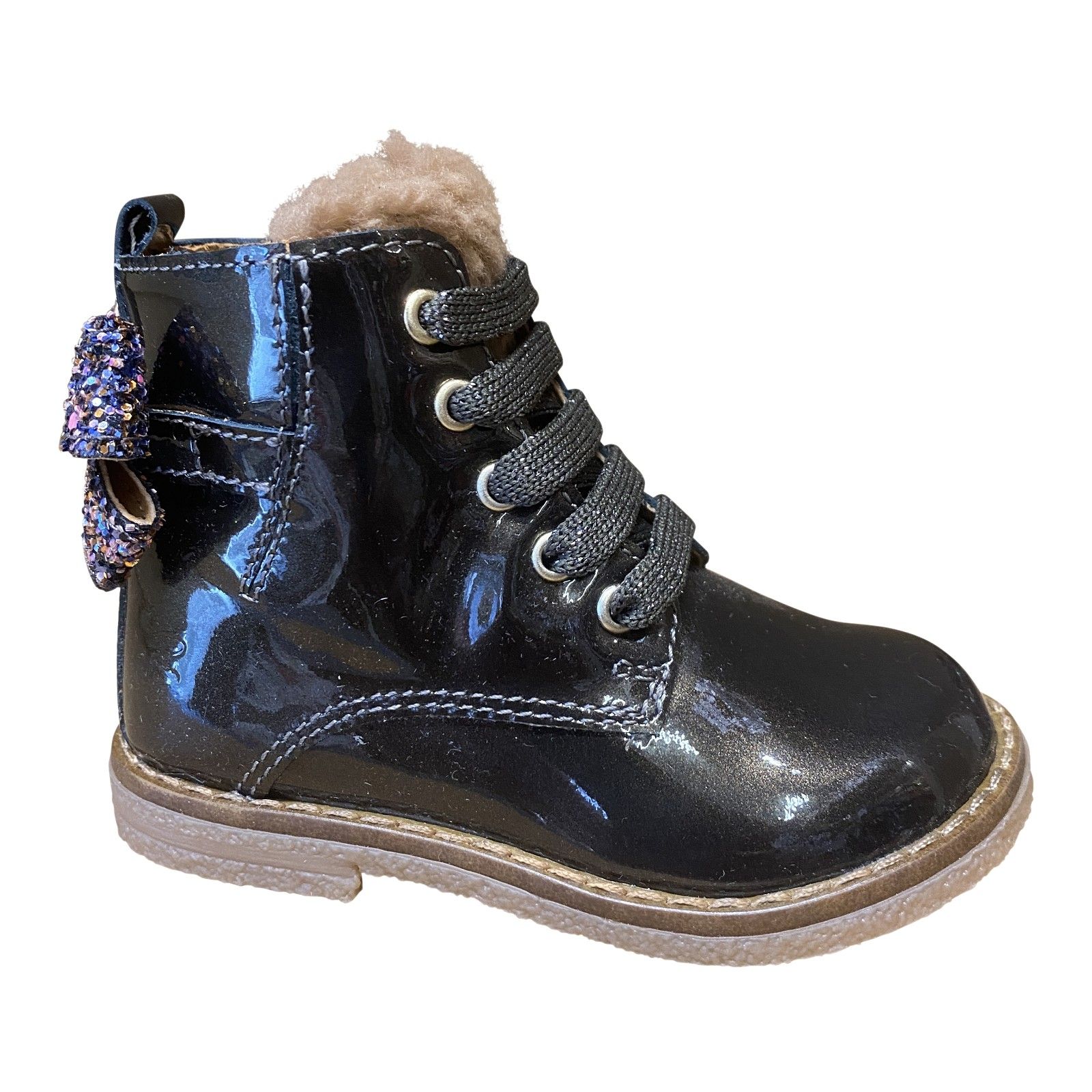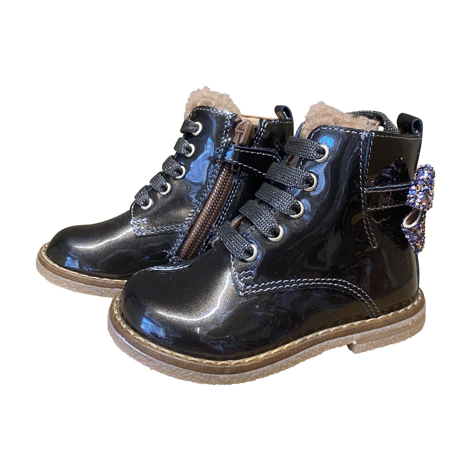 Deze Romagnoli bottine in bruin lakleder heeft een glanzende, stijlvolle uitstraling en sluit dankzij de veter-ritssluiting mooi en stevig aan rond de voet. Het model voelt soepel aan en biedt voldoende ondersteuning voor dagelijks gebruik — ideaal voor meisjes die graag actief bewegen.