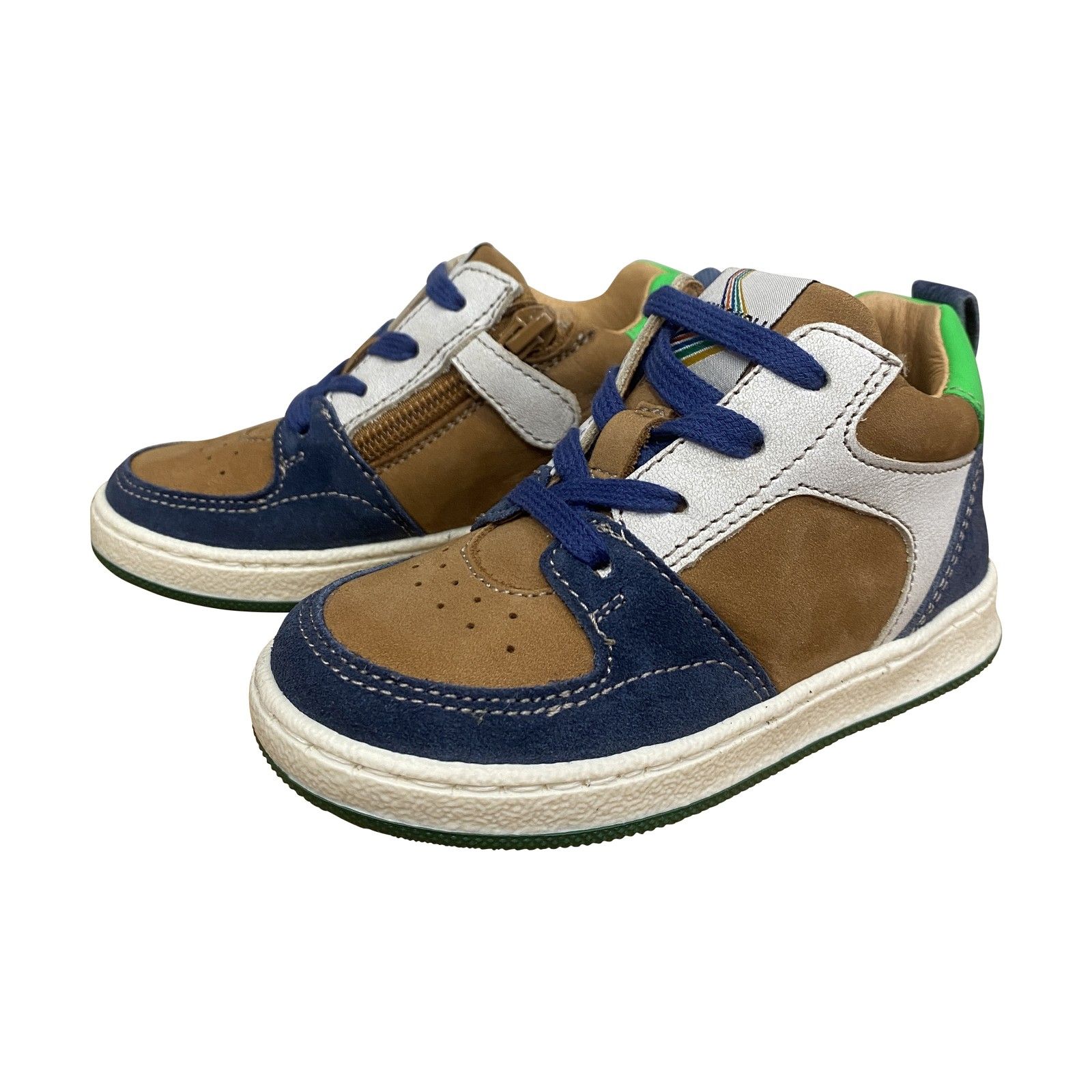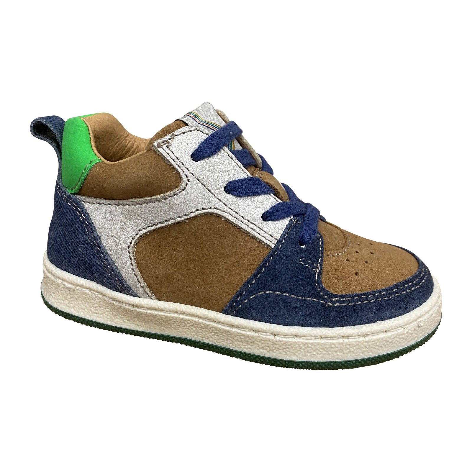 De combinatie van blauw, cognac, zilver en een frisse groene toets geeft het model een speelse, sportieve uitstraling. Een licht en flexibel paar dat perfect is voor dagelijkse avonturen en veel bewegingsvrijheid biedt.