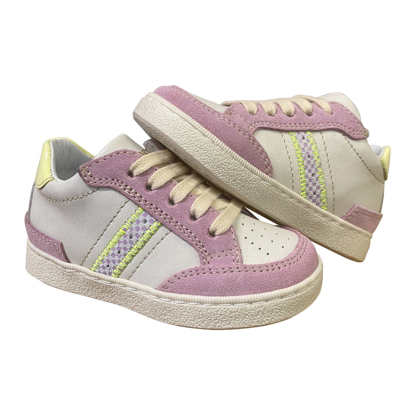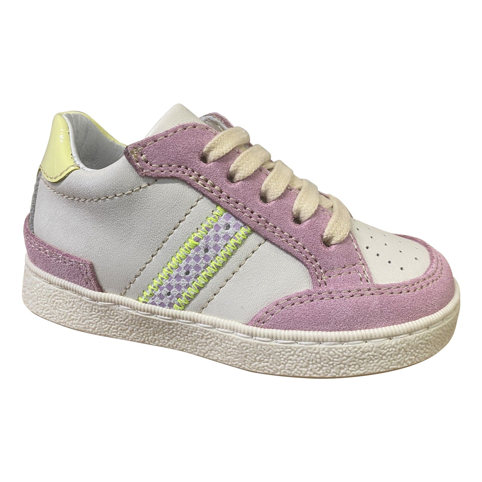 Deze Romagnoli eerste-stapsneaker. De soepele, flexibele zool volgt elke beweging van de voet en ondersteunt een natuurlijke afrol. Dankzij de veter- en ritssluiting zit het schoentje stevig én is het makkelijk aan en uit te doen. Zacht leder en een comfortabele pasvorm zorgen voor optimaal draagcomfort.