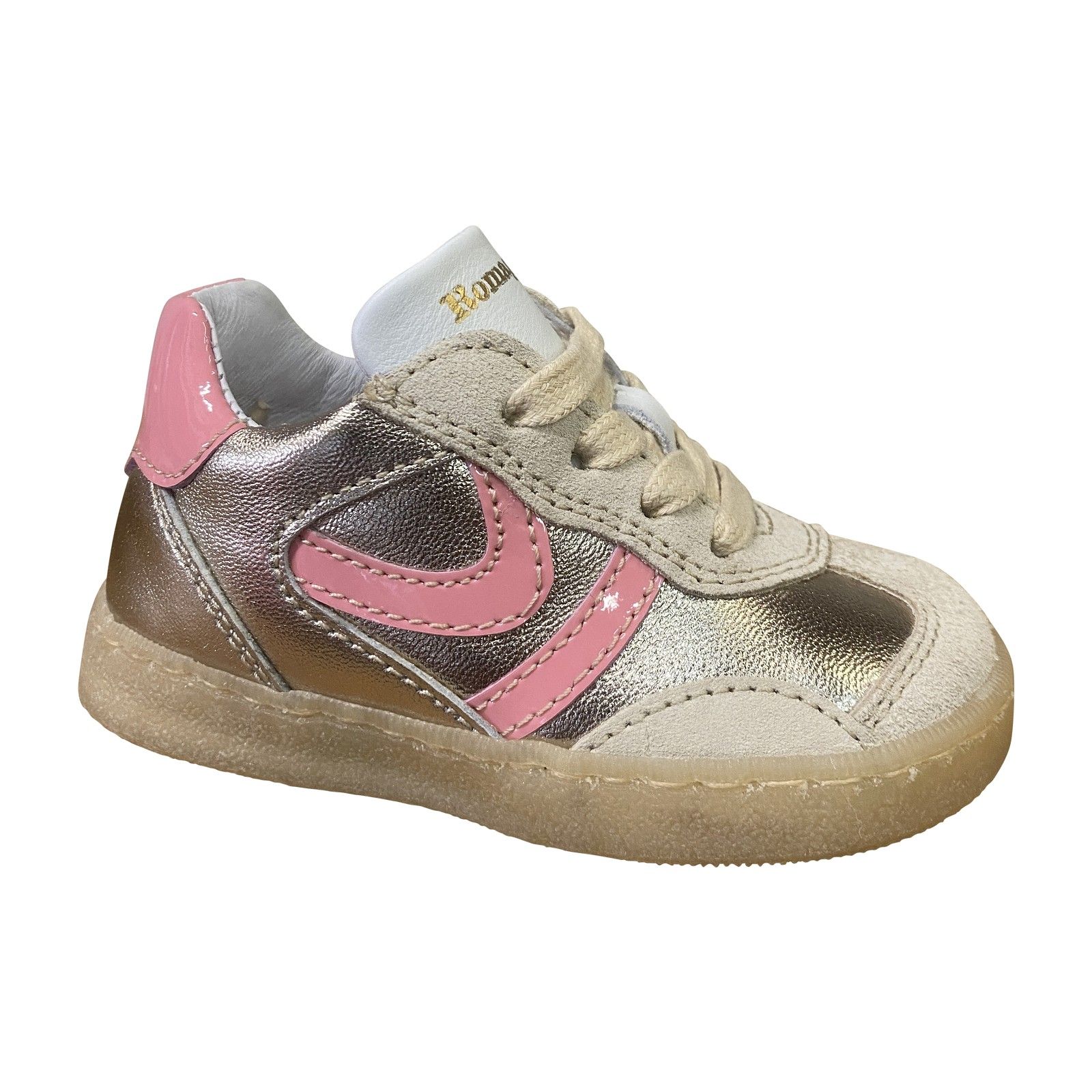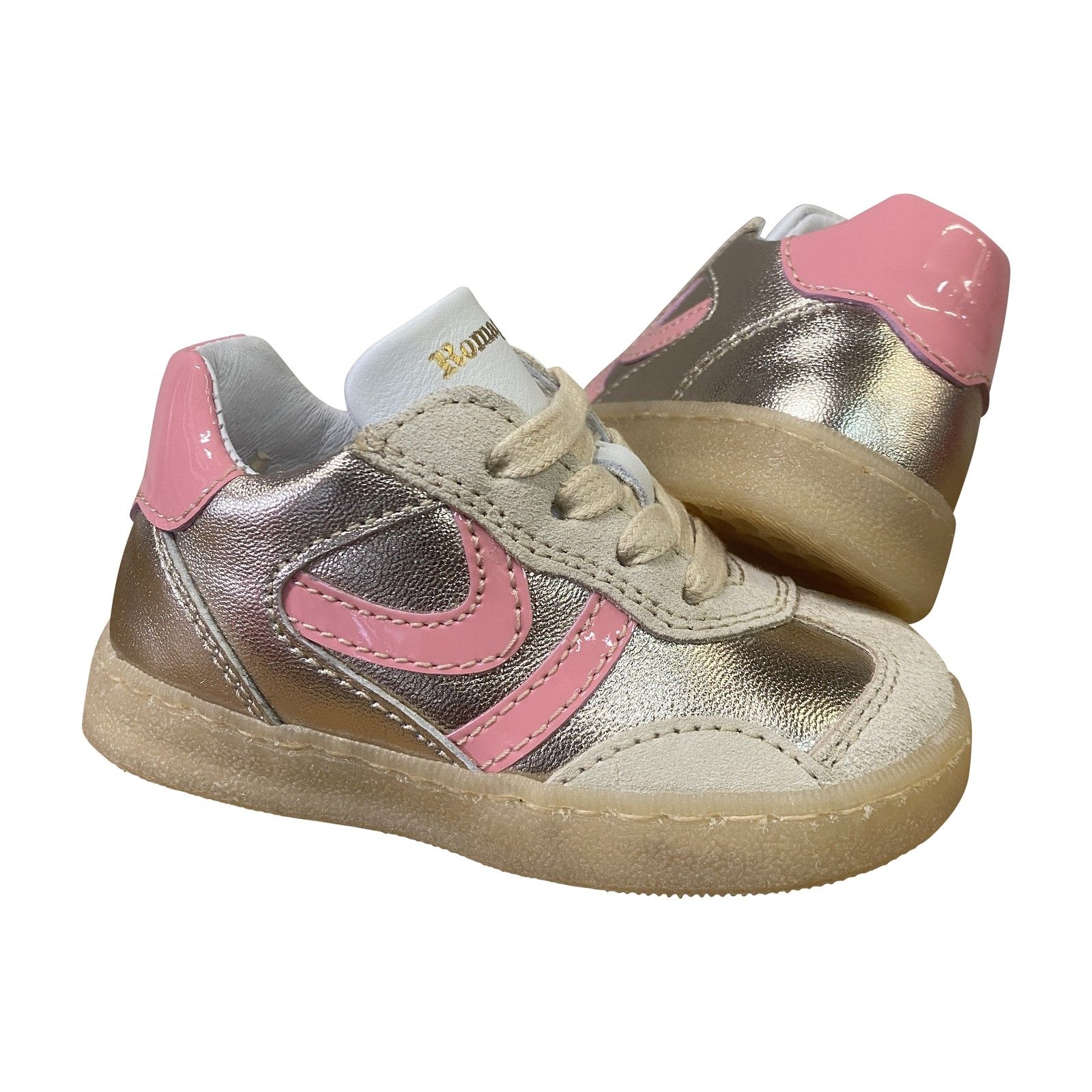 Deze Romagnoli sneaker is uitgevoerd in zacht leder en suède met subtiele metallic en roze accenten. De flexibele rubberzool zorgt voor een stabiele en comfortabele afrol, terwijl de schoen mooi aansluit rond de voet. Een ideale sneaker voor dagelijks gebruik met veel bewegingsvrijheid en een fijne pasvorm.