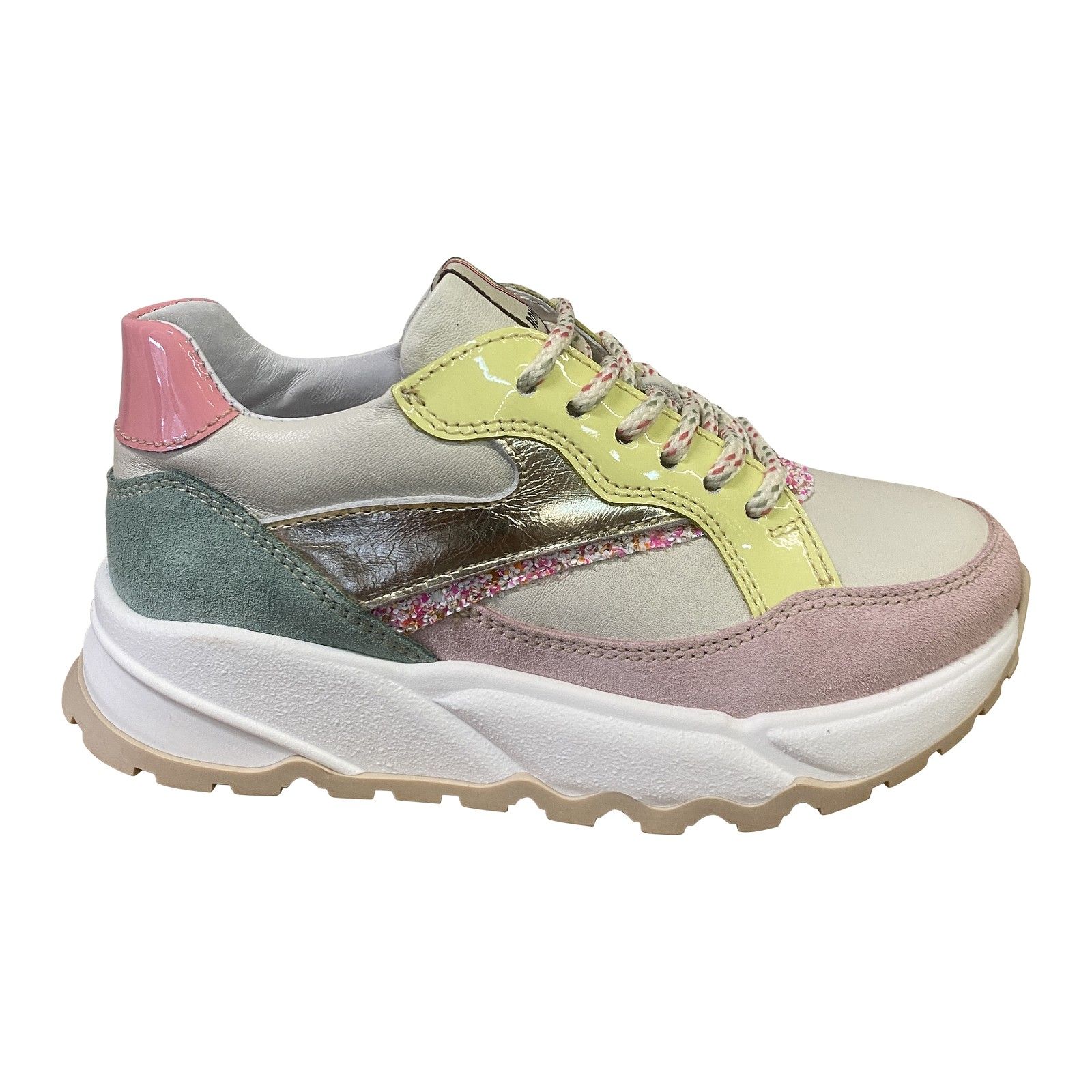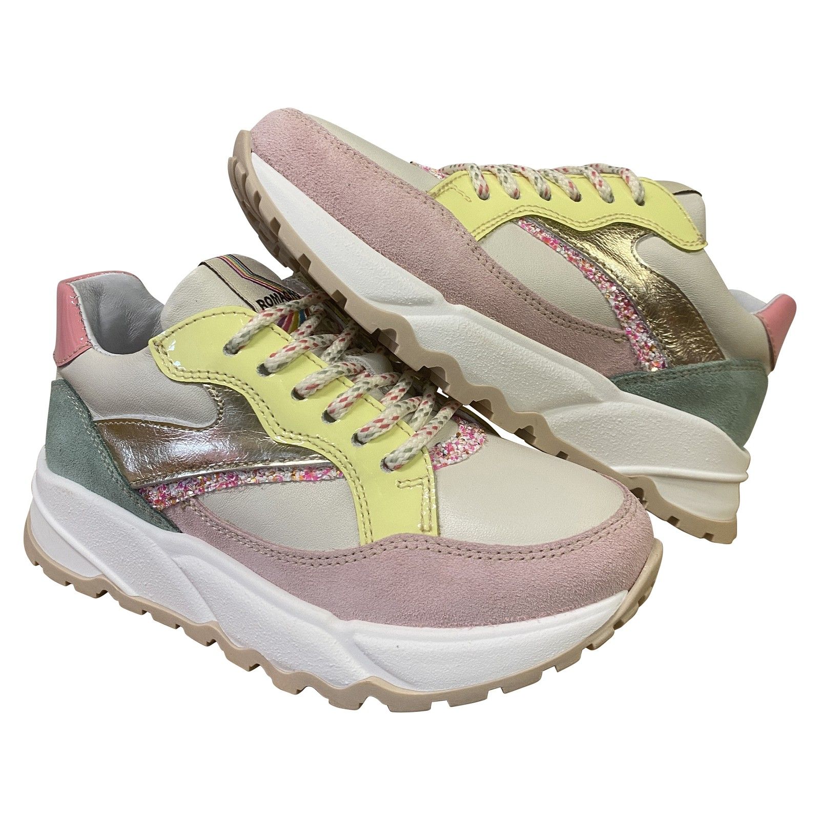 Deze Romagnoli sneaker is gemaakt uit soepel leder met zachte suède accenten en kleurrijke details. De stevige maar lichte zool biedt goede ondersteuning bij elke stap. Dankzij de comfortabele pasvorm sluit de schoen mooi aan rond de voet en geeft hij voldoende ruimte voor de tenen. Ideaal voor actieve kinderen die comfort en stijl willen combineren.