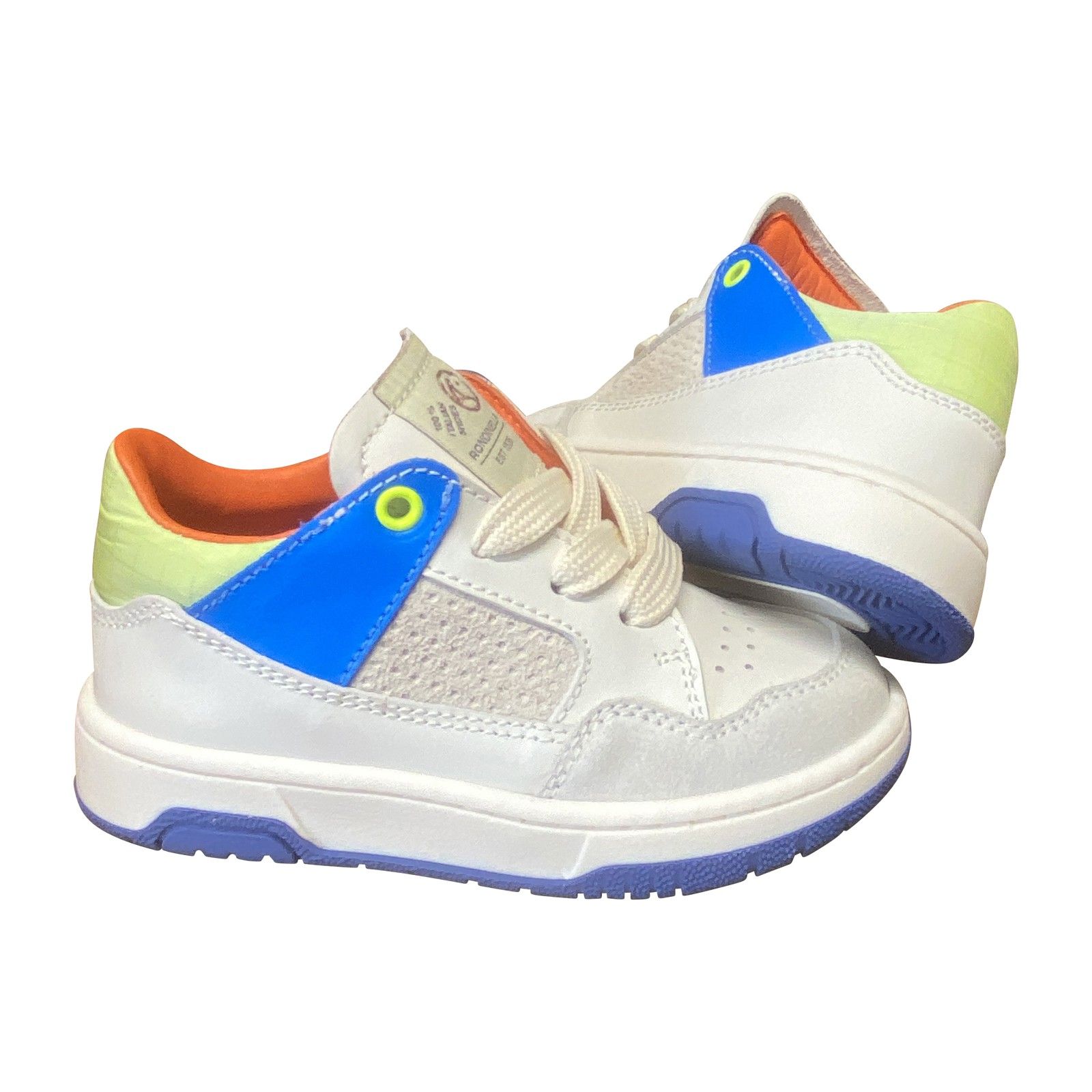 Stoere jongens sneaker in basketter model met een sportieve uitstraling. Uitgevoerd in leer met ademende perforaties en opvallende kleuraccenten voor een frisse look. De stevige zool en comfortabele pasvorm maken dit model geschikt voor dagelijks gebruik en actief spelen.