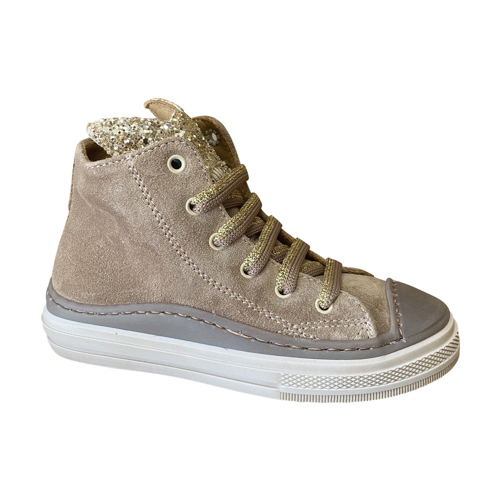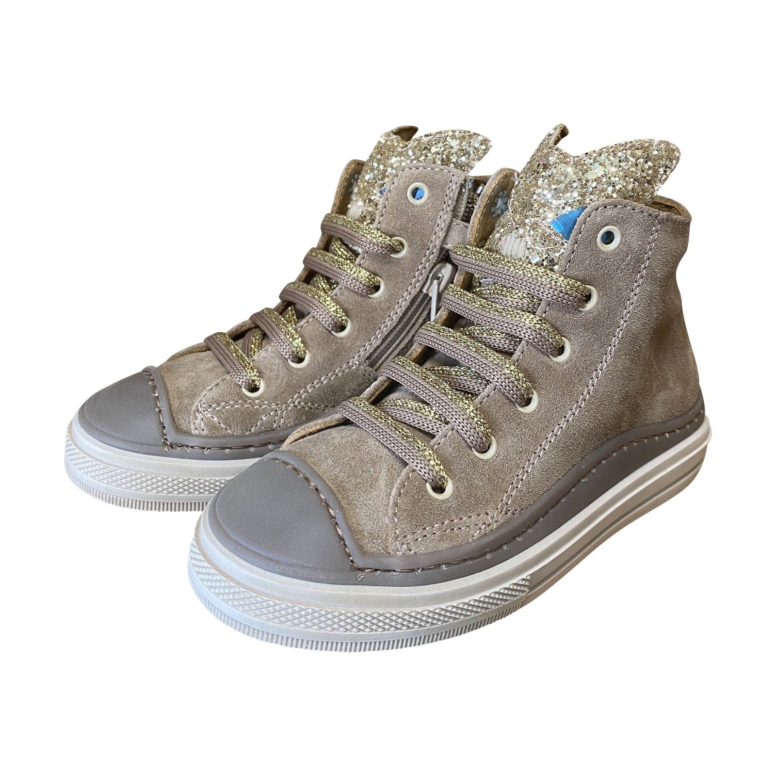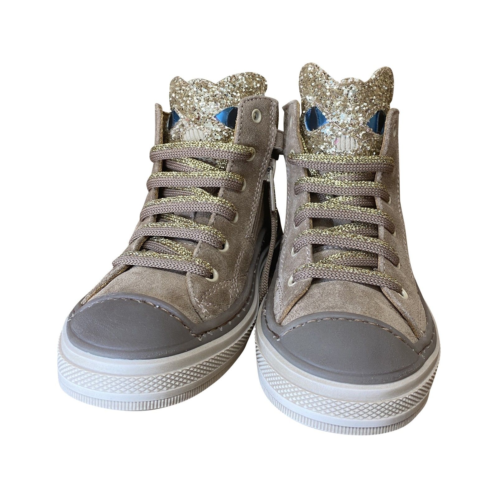 Deze zandkleurige sneaker krijgt een magische, speelse touch dankzij het glitterende poesje op de tong. Gemaakt van zacht crosta leder en voorzien van een stevige zool voor dagelijks comfort. De veter-ritssluiting maakt aan- en uittrekken super eenvoudig. Een echte lievelingsschoen voor meisjes die van glitter & fun houden!