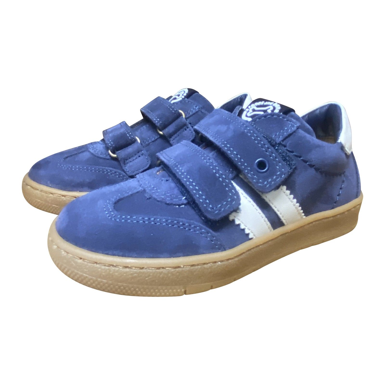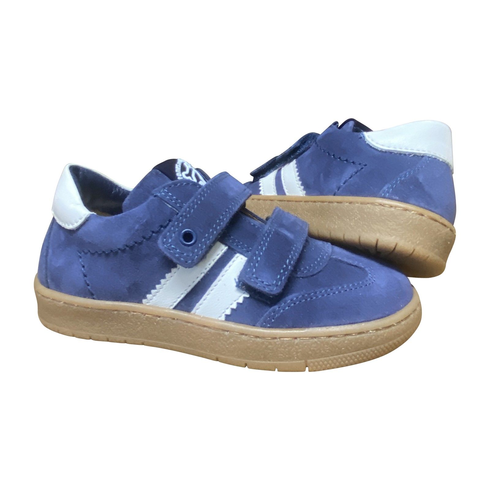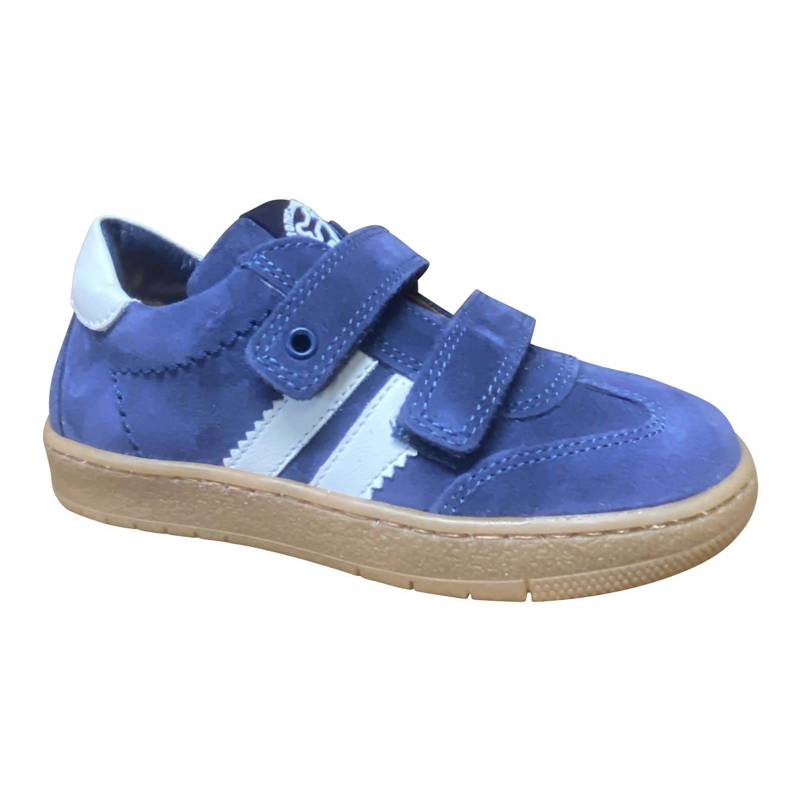 Een stoere, blauwe sneaker met velcro — makkelijk voor kinderen die het graag zelf doen!
