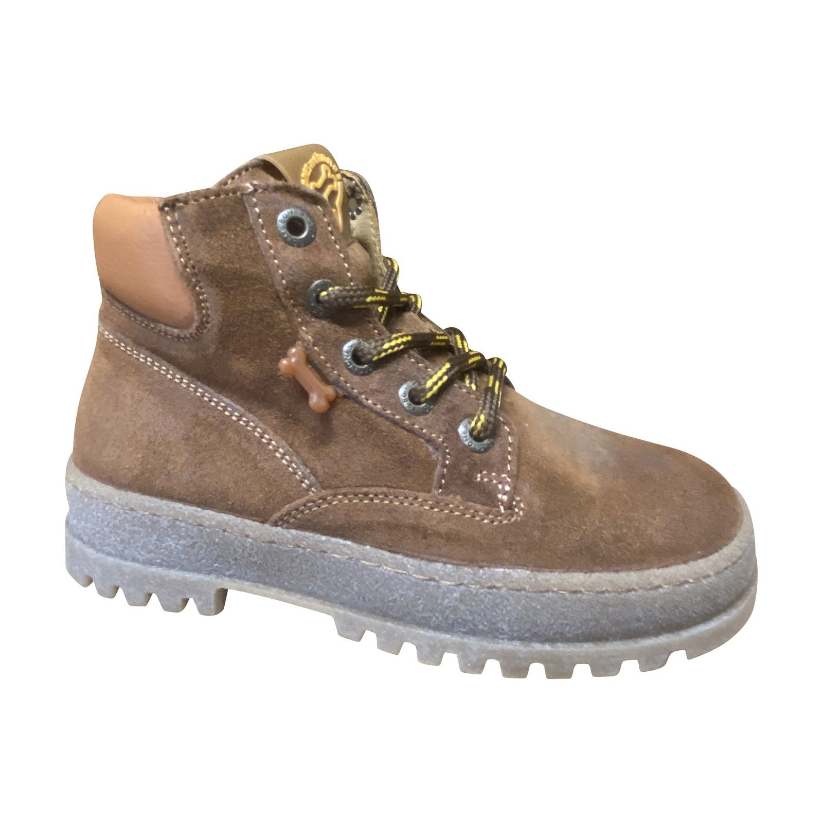 De BOOGY 5392 is een stevige, stoere jongensbottine in warm cognac crosta leder. De dikke, gripvaste zool geeft extra stabiliteit tijdens het spelen, terwijl de zachte enkelrand zorgt voor comfort. Dankzij de veter-ritssluiting gaat deze bottine makkelijk aan en uit. De cognac kleur, lichte stiksels en het leuke bot-accent maken hem helemaal compleet — een ideale schoen voor avontuurlijke kids.