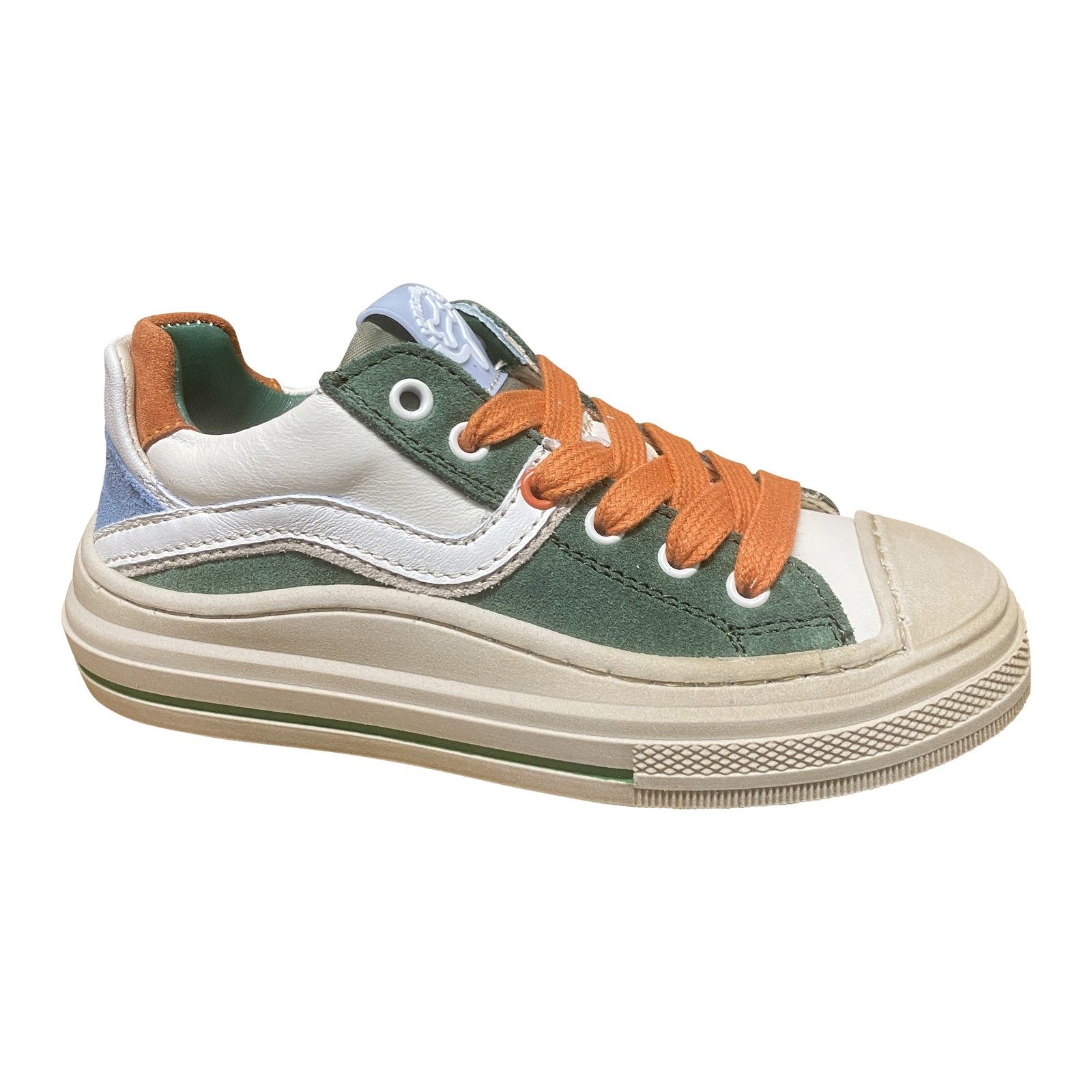 Stoere jongensschoen van Stones and Bones met veter- en ritssluiting voor een makkelijke instap en een stevige pasvorm. De schoen is uitgevoerd in een speelse mix van groen, wit, blauw en oranje en afgewerkt met een rubberen neus die de schoen beschermt tijdens het spelen. Ideaal voor actieve jongens, zowel voor school als vrije tijd.
