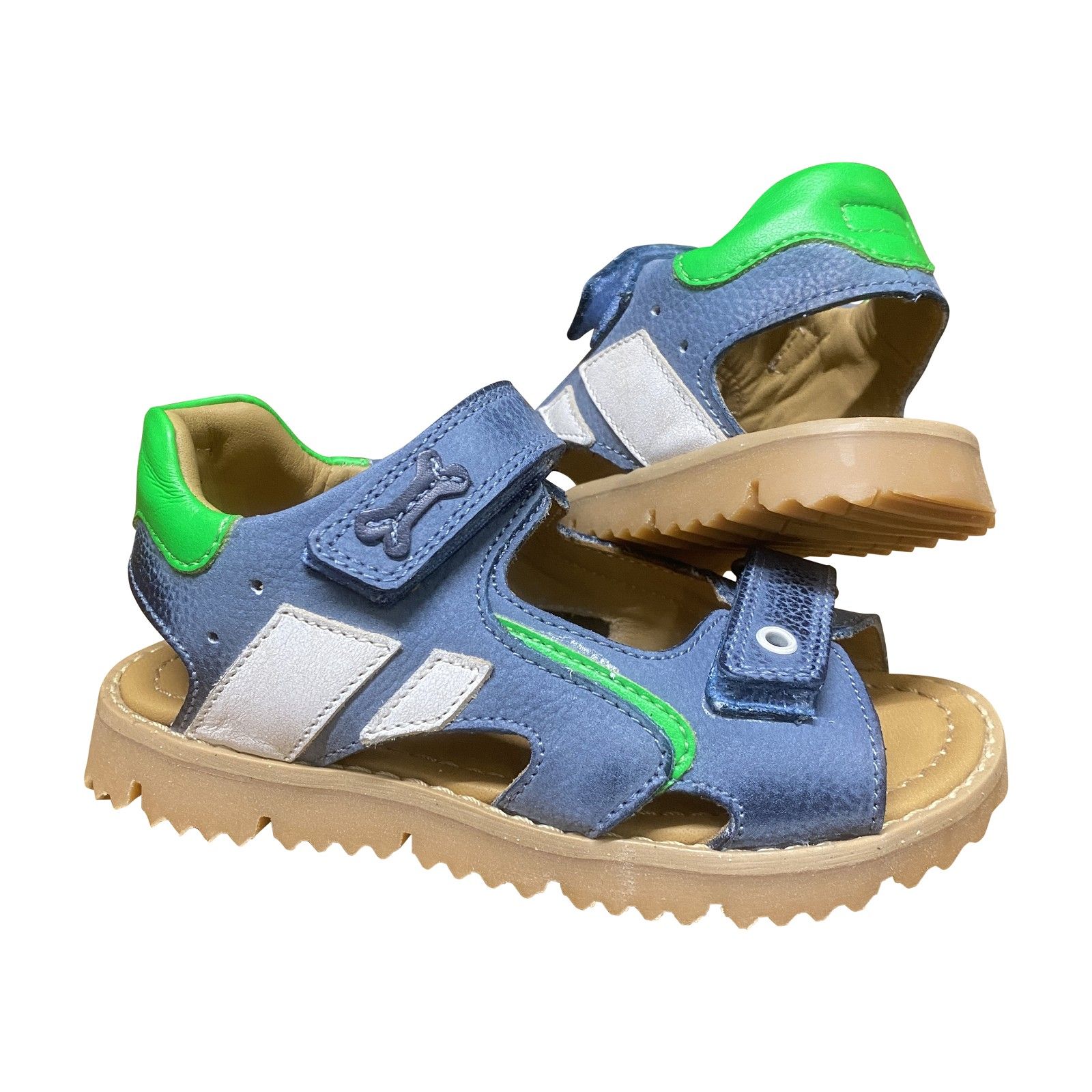 Sportieve open sandaal van Stones and Bones in cobaltblauw met frisse groene accenten.