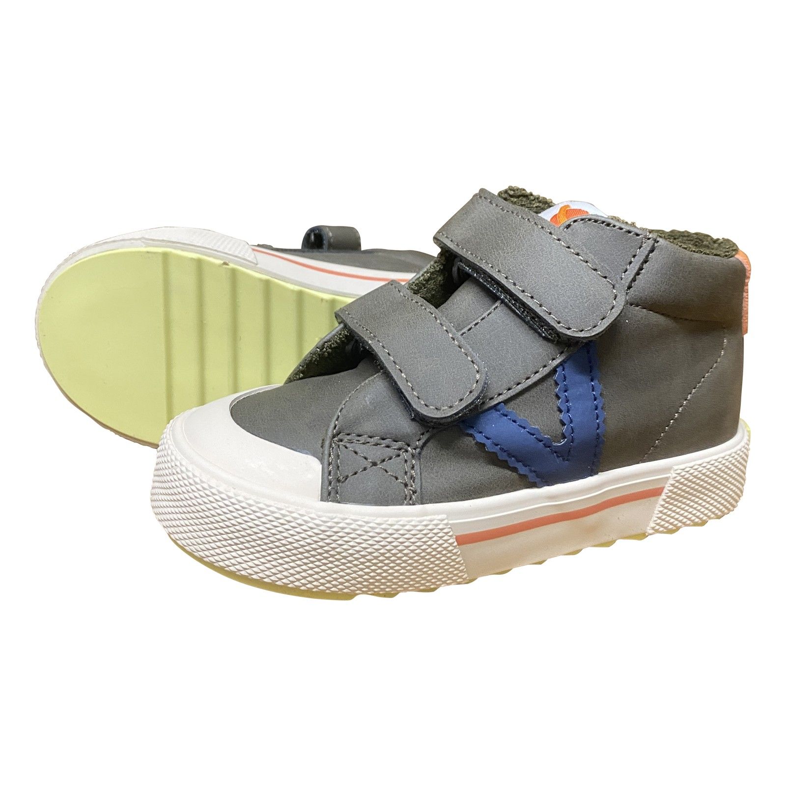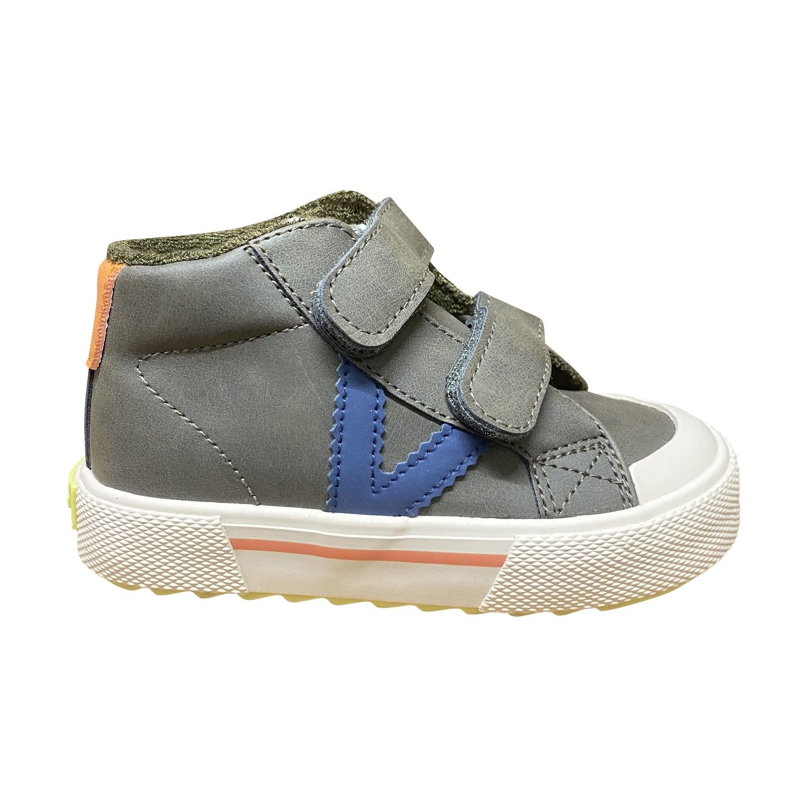 Stoere kaki sneaker van Victoria met dubbele velcrosluiting. De zachte lederlook en lichte zool zorgen voor een comfortabele pasvorm. Dankzij de frisse kleuraccenten is dit een vrolijk en makkelijk te combineren everyday model.