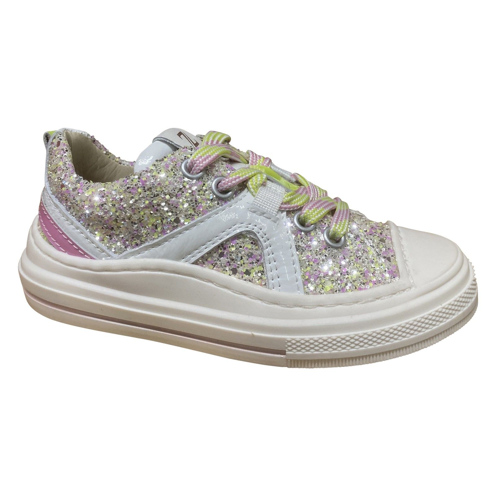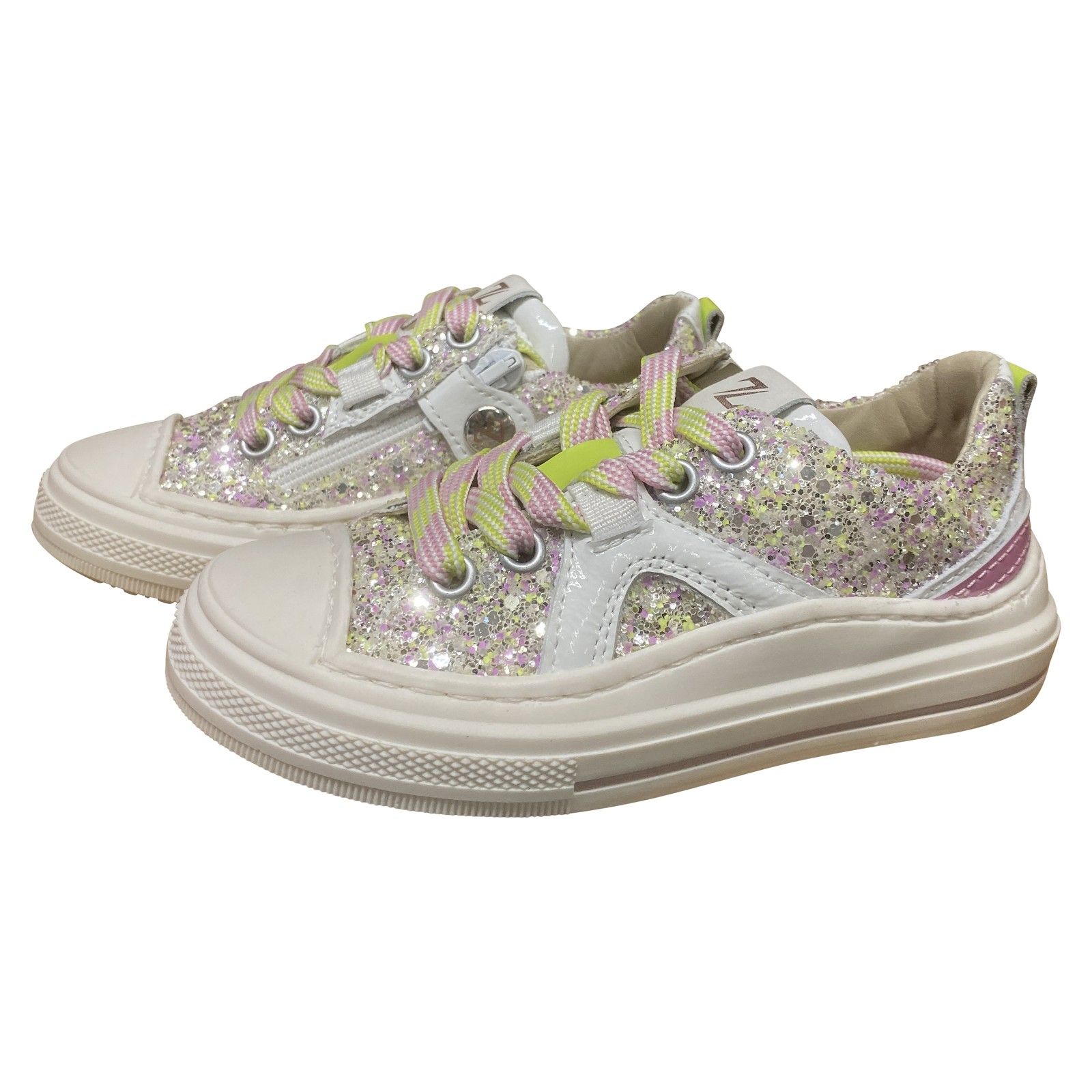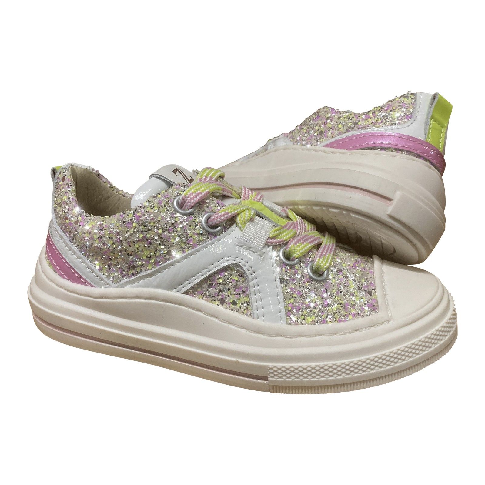 Stoere meisjesschoen van Zecchino d’Oro met een zachte glittermix in meerdere kleuren voor een speelse uitstraling. De combinatie van veters en rits zorgt voor een goede pasvorm en makkelijke instap. Het rubberen topje beschermt de schoen tijdens het spelen. Ideaal voor een stoer meisje dat graag straalt.